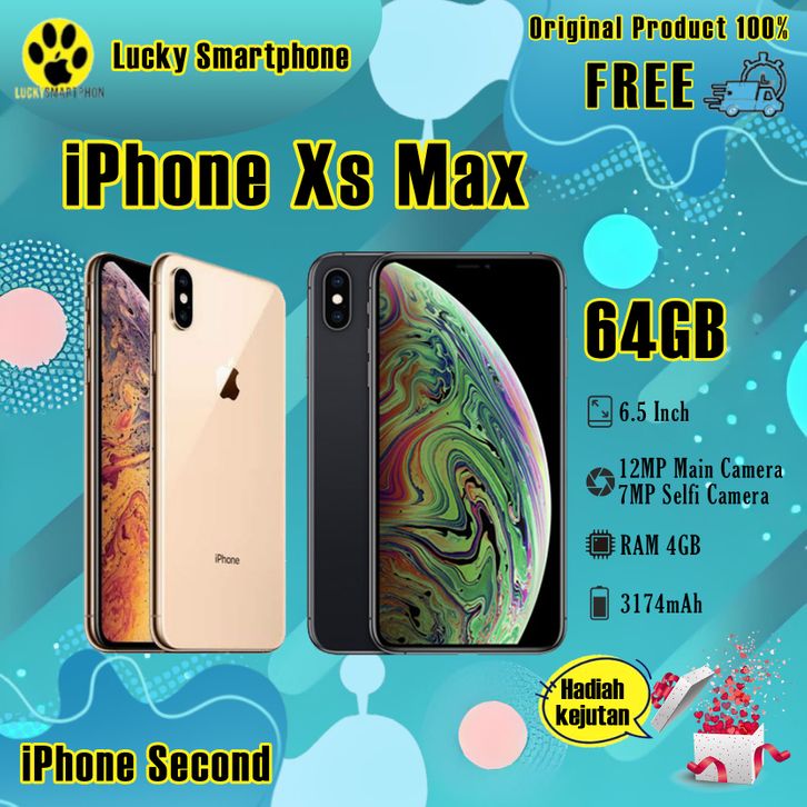 iPhone Xs Max 64GB Second Original100% 4G 6.5"OLED-Ori Fullset Mulus Normal Like New Smartphone