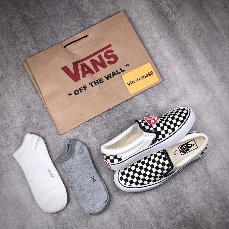 SEPATU VANS SLIP ON CHECKERBOARD CLASSIC WHITE BLACK CATUR KOTAK KOTAK PREMIUM