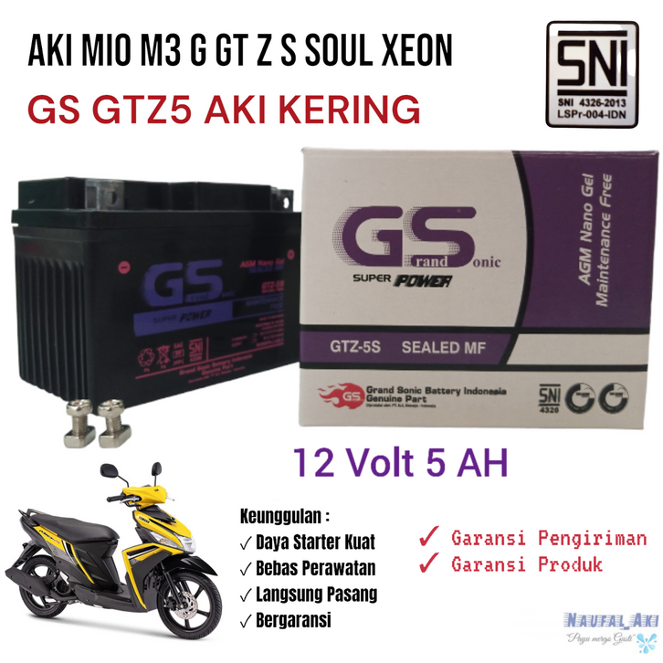 Aki Motor BEAT MIO M3 J GT Z S XEON/ SOUL GSJ GTZ5 Aki Kering Langsung Pasang