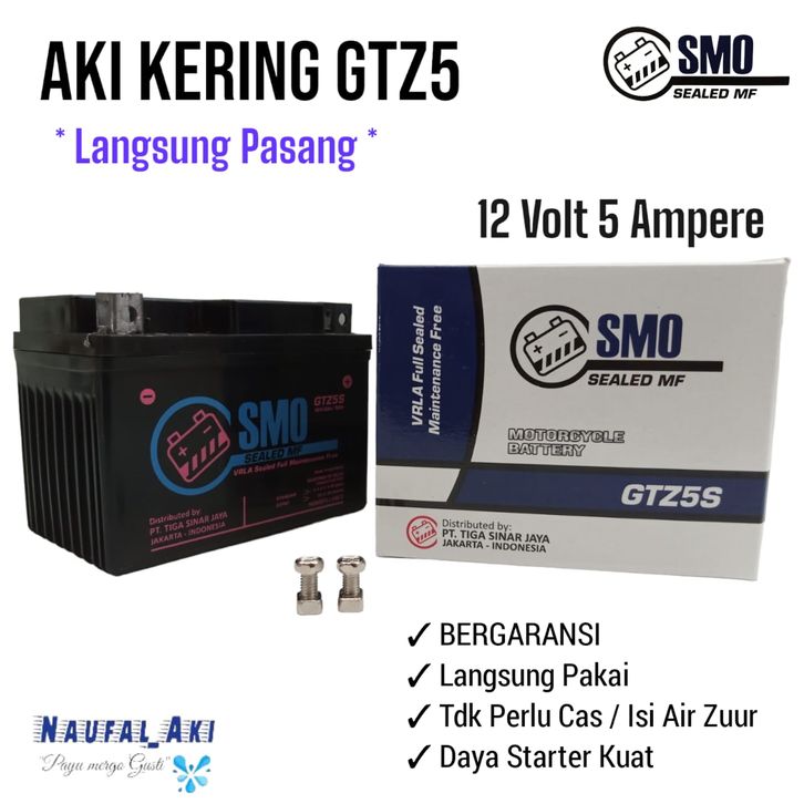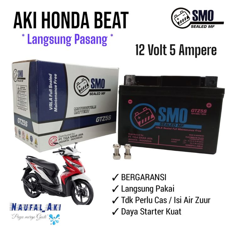 Aki Motor Honda BEAT FI ESp Karbu SMO GTZ5 Aki Kering Langsung Pasang