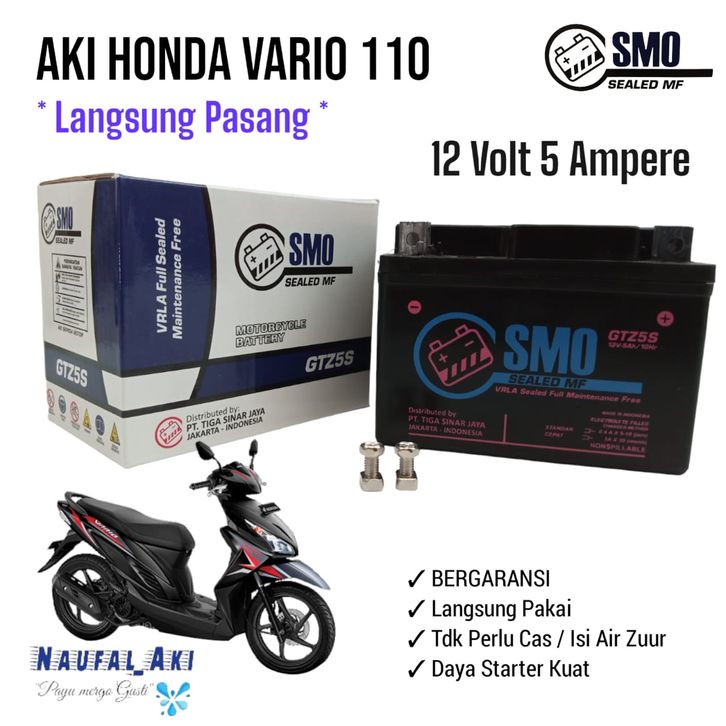 Aki Motor Honda Vario 110 SMO GTZ5 Aki Kering Langsung Pasang