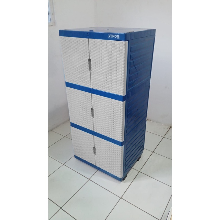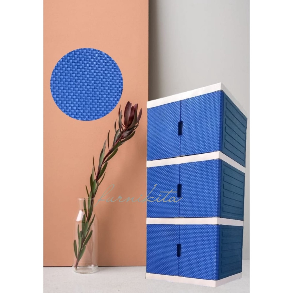 PERALATAN RUMAH TANGGA MODERN LEMARI PAKAIAN SERBAGUNA PLASTIK MINI ARTHA MINIMALIS MOTIF ROTAN SUSUN 3