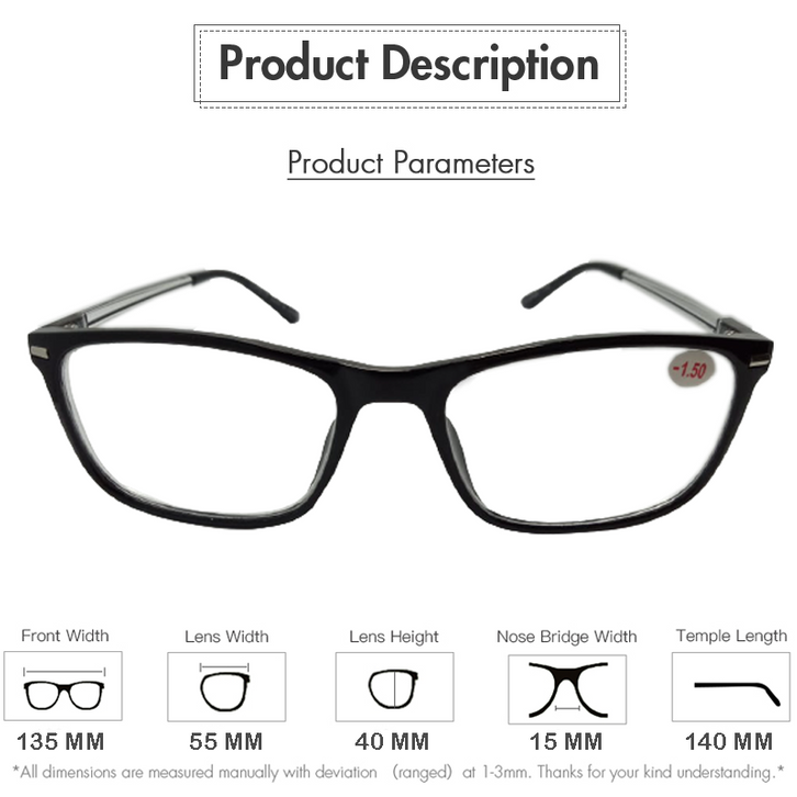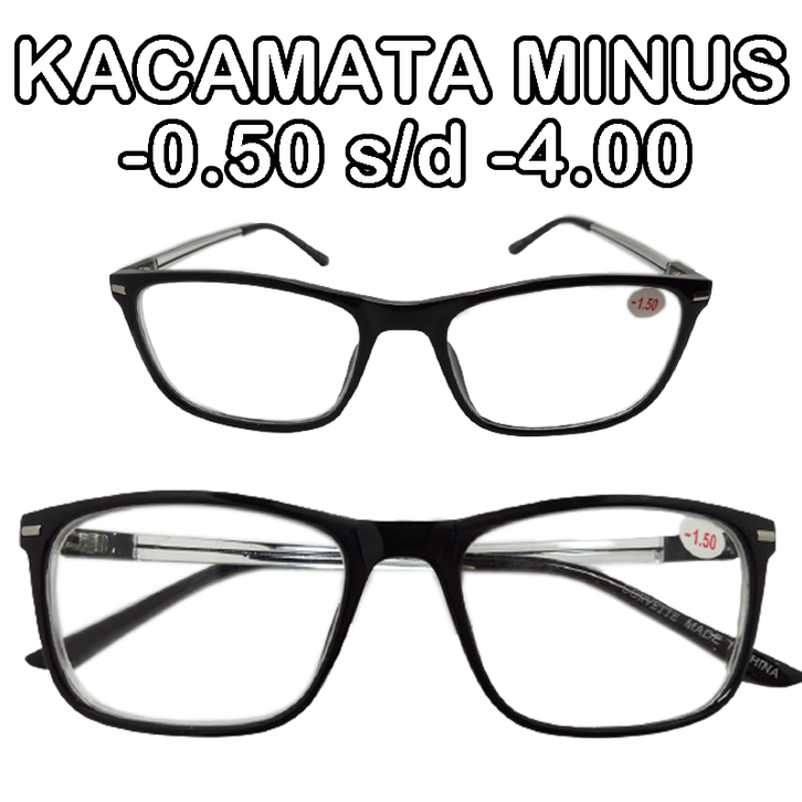 Kacamata Minus Pria Dan Wanita (-) 1.00 , 1.50 , 2.00 , 2.50 , 3.00 Frame Kotak Persegi Gagang Transparant