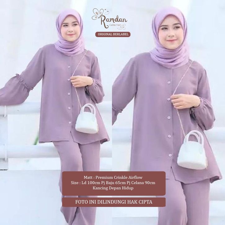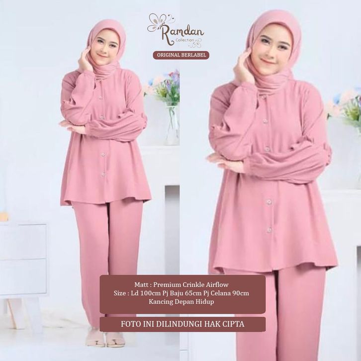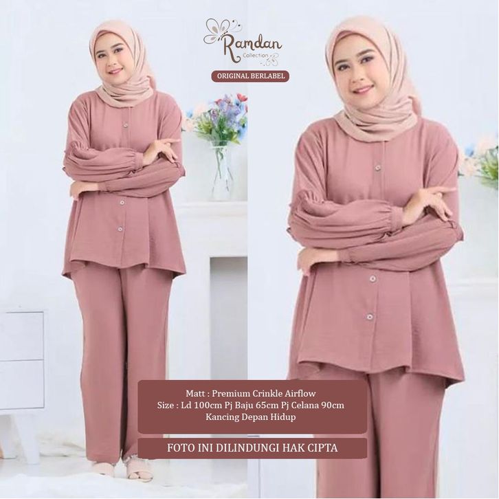 Baju Setelan Wanita Murah Cleona Set Matt Premium Crinkle Airflow Busui Friendly Kancing Depan Hidup