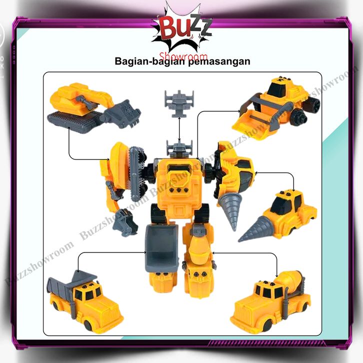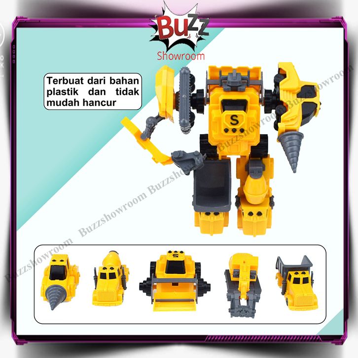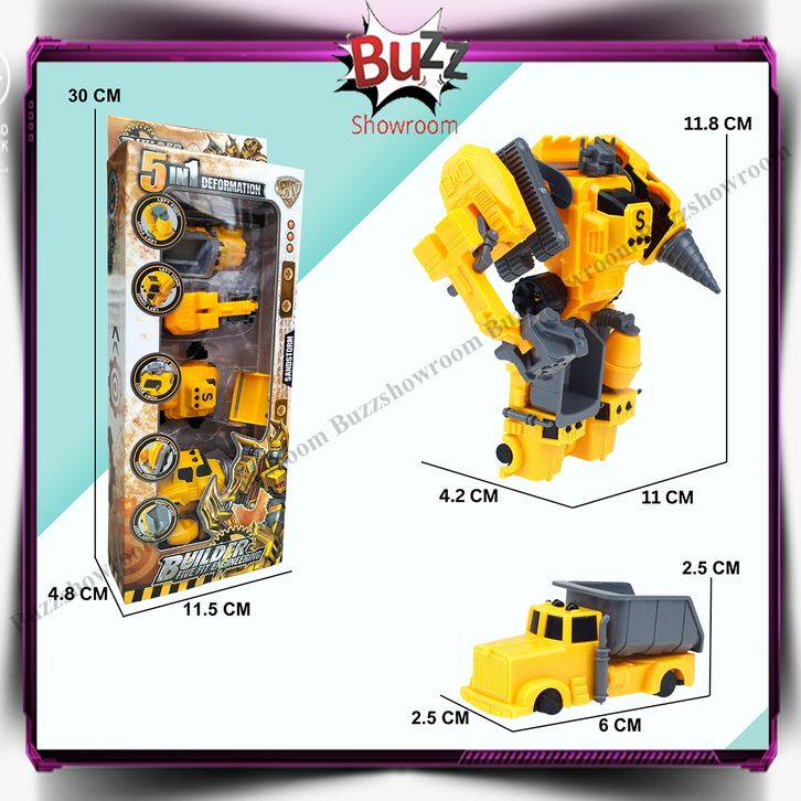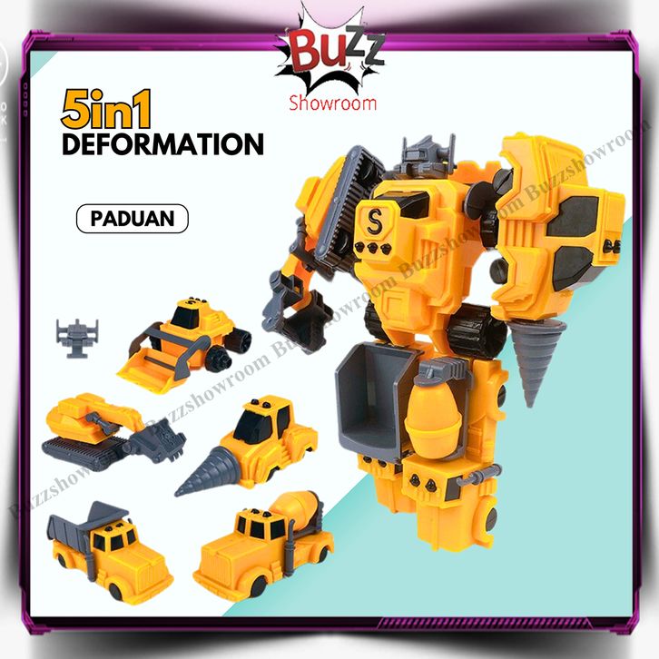 5in1 Deformation transform mainan mobil jadi robot Builder Five Fit Engineering