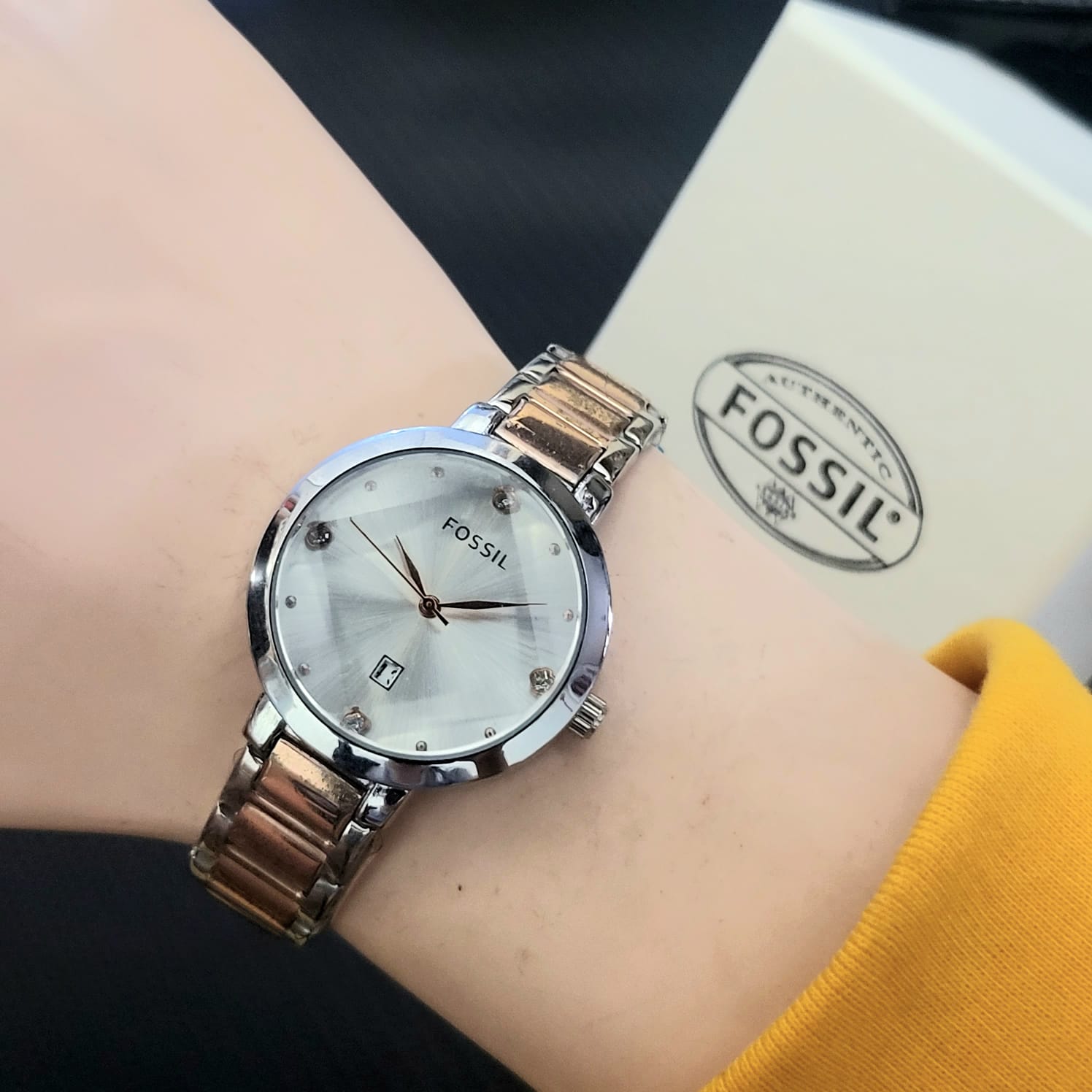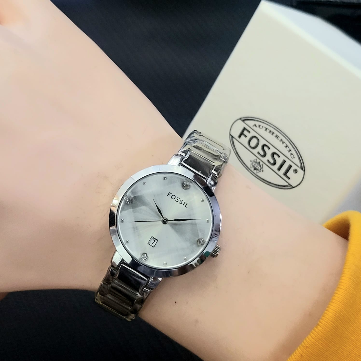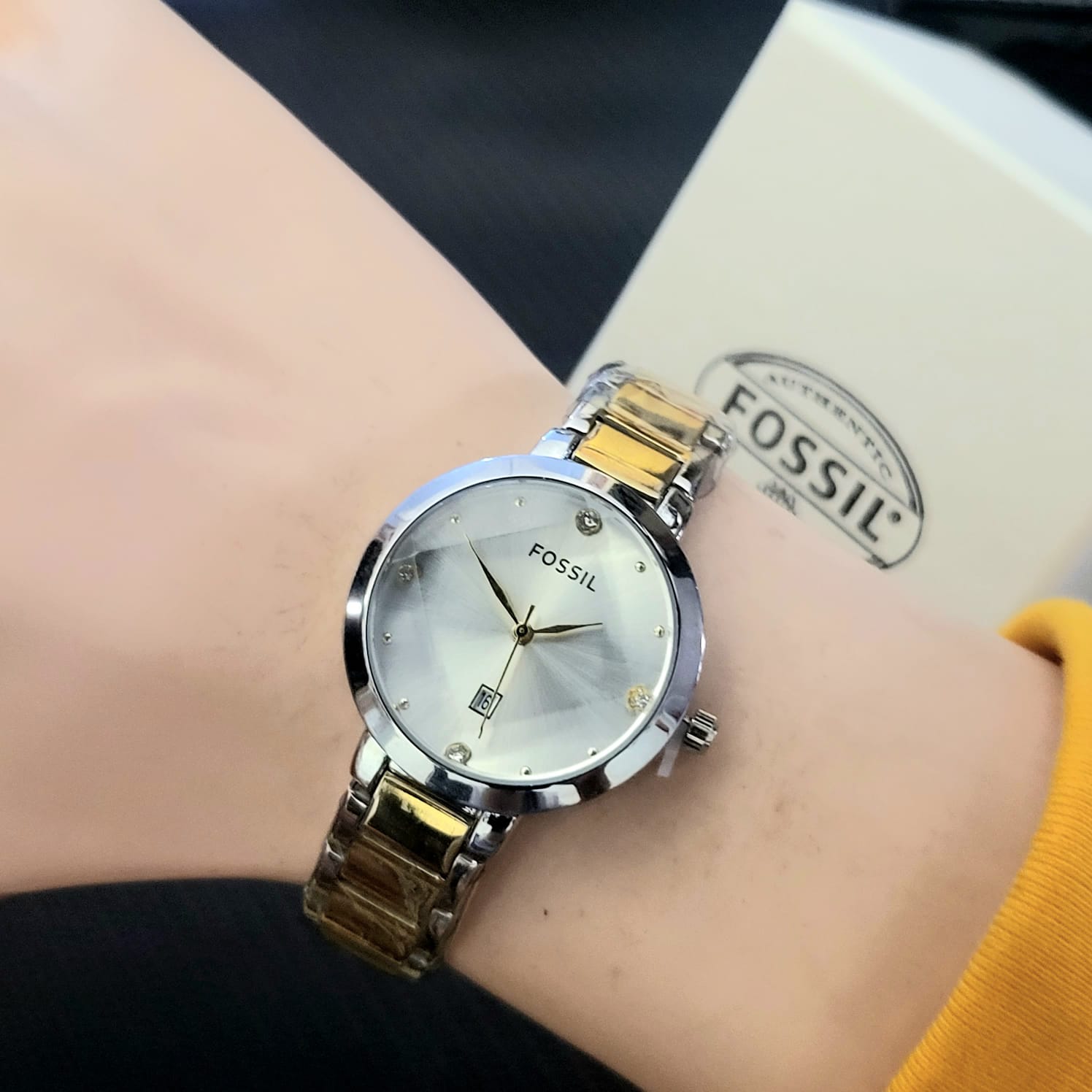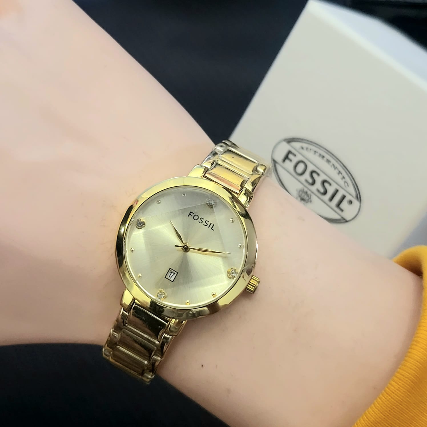 Jam Tangan Wanita Fossil F4658Yl Tanggal Aktif Tali Rantai Free Box Original & Baterai Cadangan