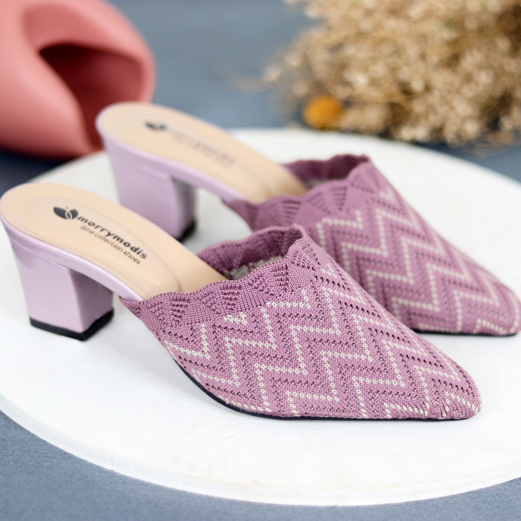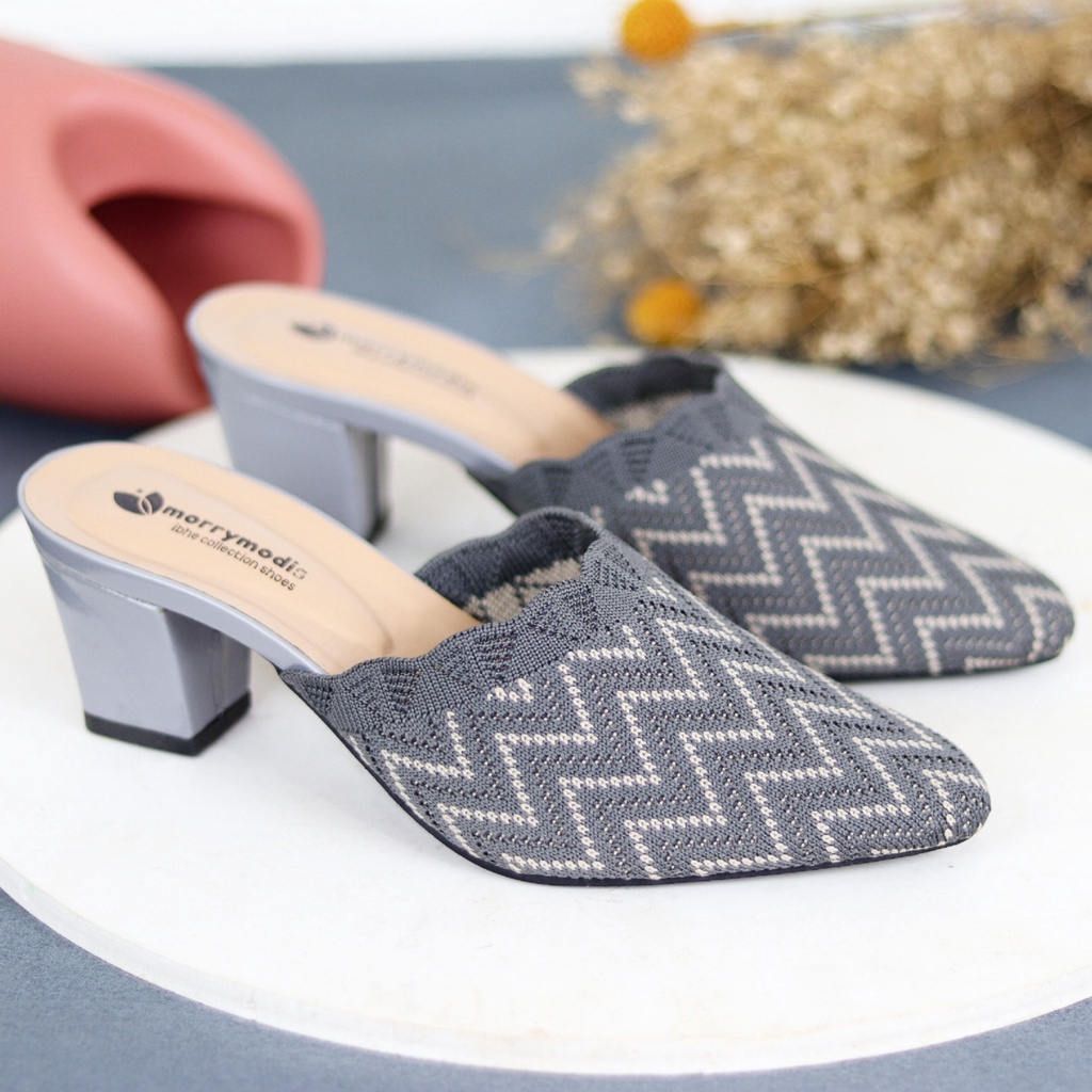 SENDAL SELOP ZIGZAG SANDAL HEELS WANITA RAJUT IMPORT REALPIC NEW