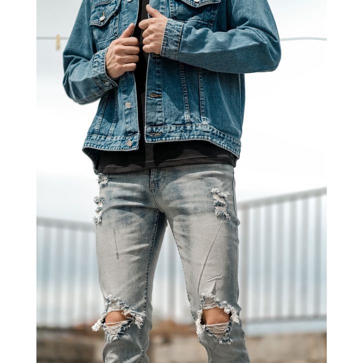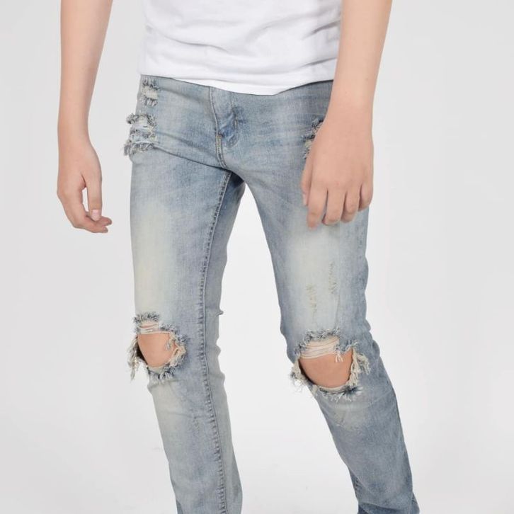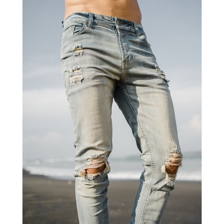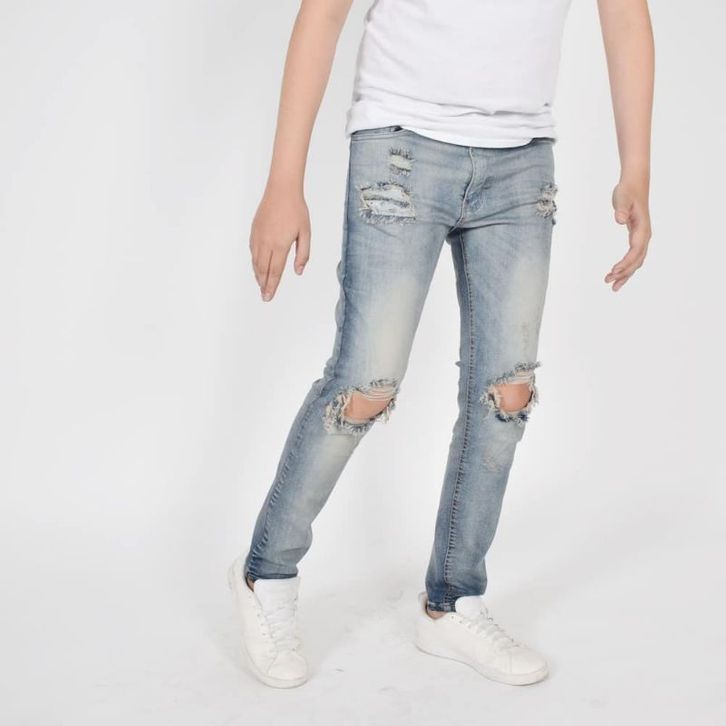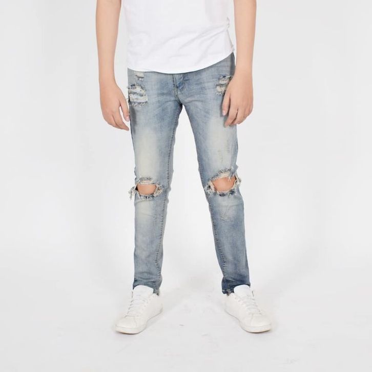 Celana Jeans Cowok Panjang Vintage blue M18 - Celana Jeans Pria Skinny Slimfit Ripped Jeans