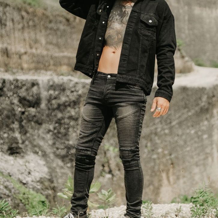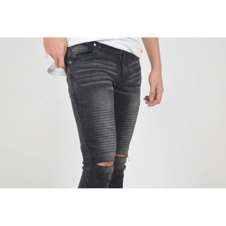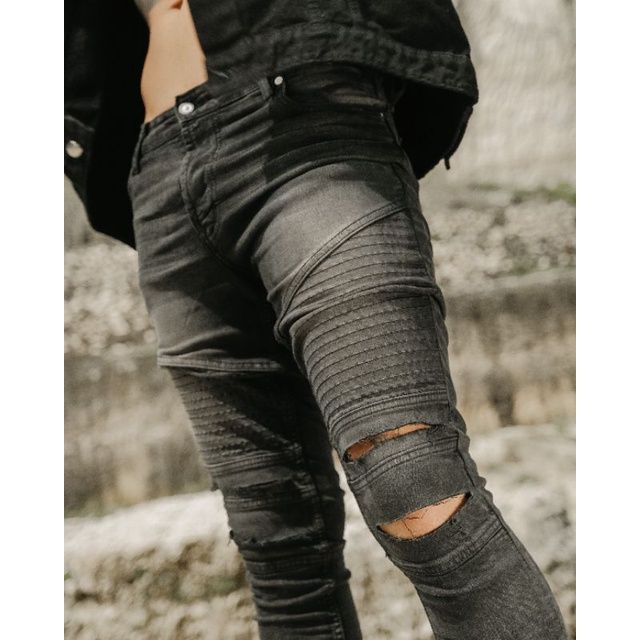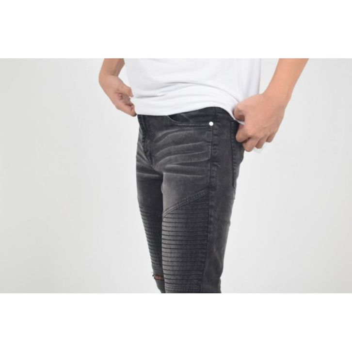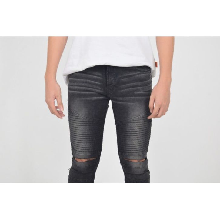 Celana Jeans Cowok Panjang Biker Dush Black - Celana Jeans Pria Sobek Skinny Slimfit Jeans