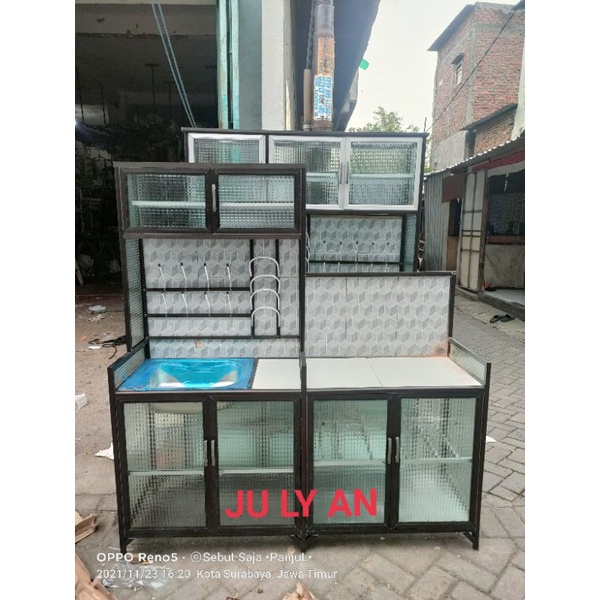 Rak Piring Kaca Wastafel+Meja Kompor 1.5 meter Terlaris ( khusus daerah surabaya)