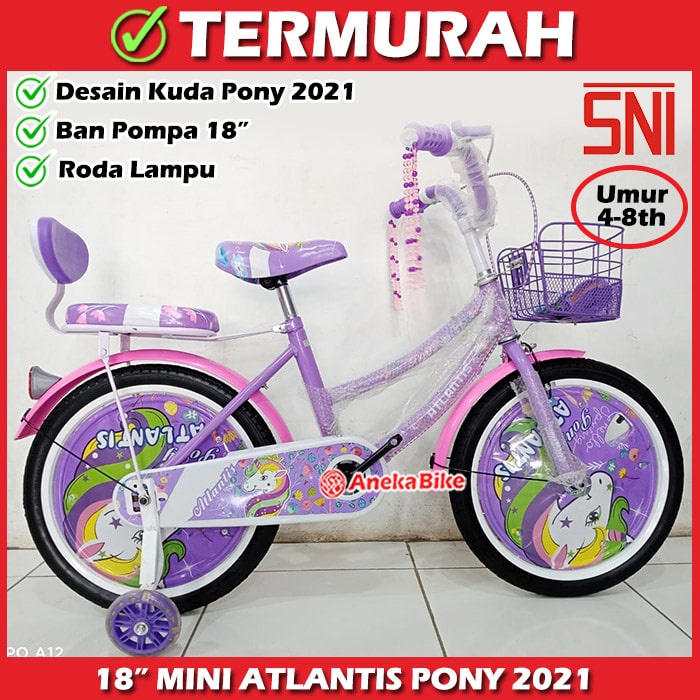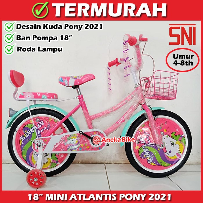 SEPEDA ANAK PEREMPUAN Atlantis Pony Murah Sepeda Anak Cewek Keranjang 18 Inch