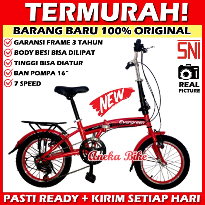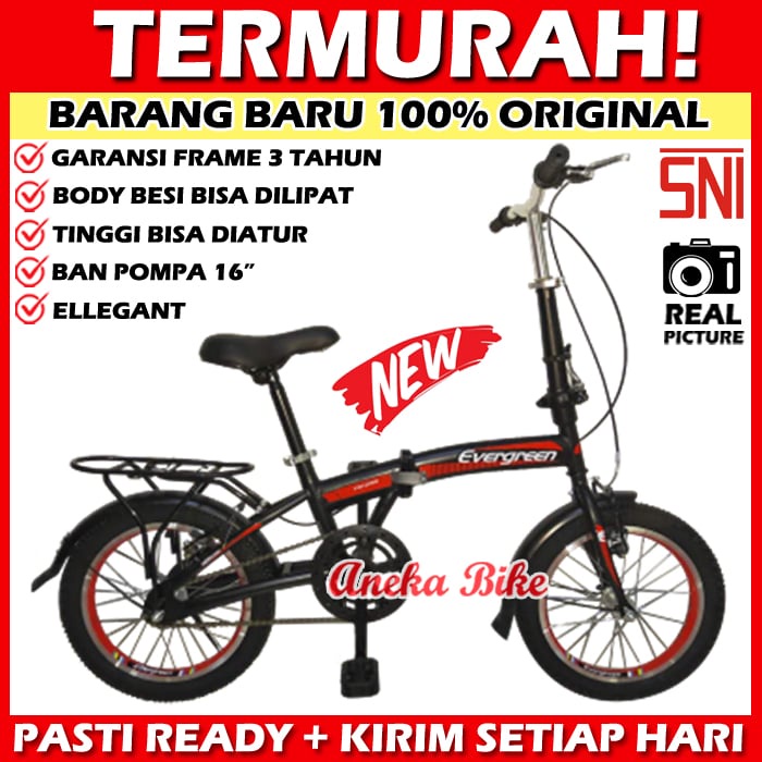 Sepeda Lipat Anak 16 inch Perempuan Laki Evergreen 1 Speed & 7 Speed