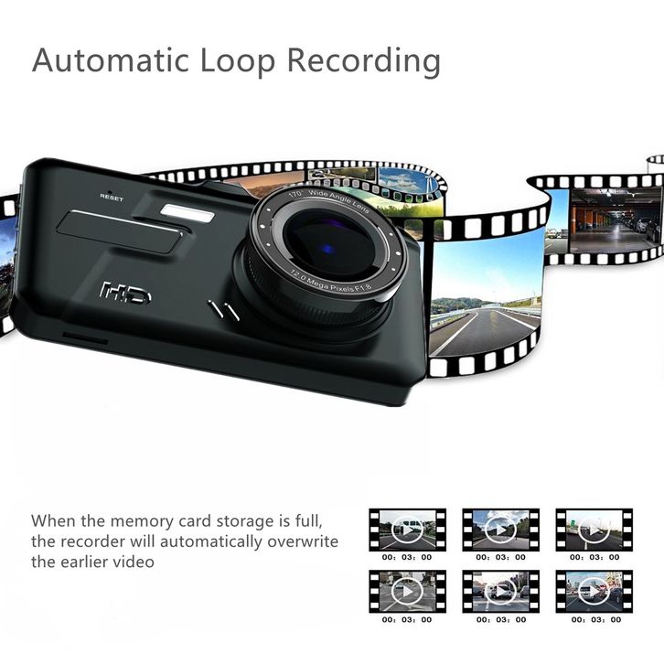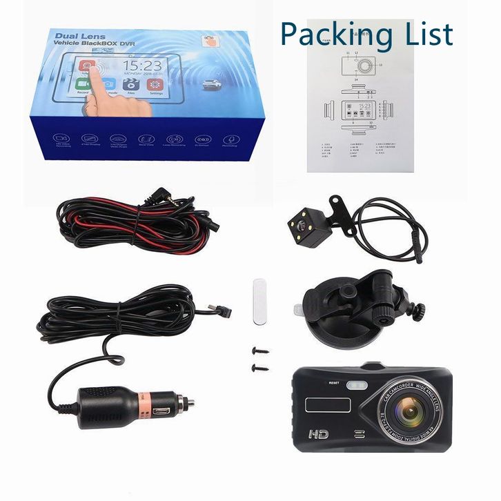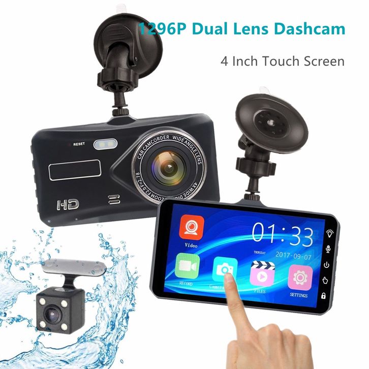 Dash cam mobil HD Touch Screen Dual lens front rear night vision 170° wide loop recording