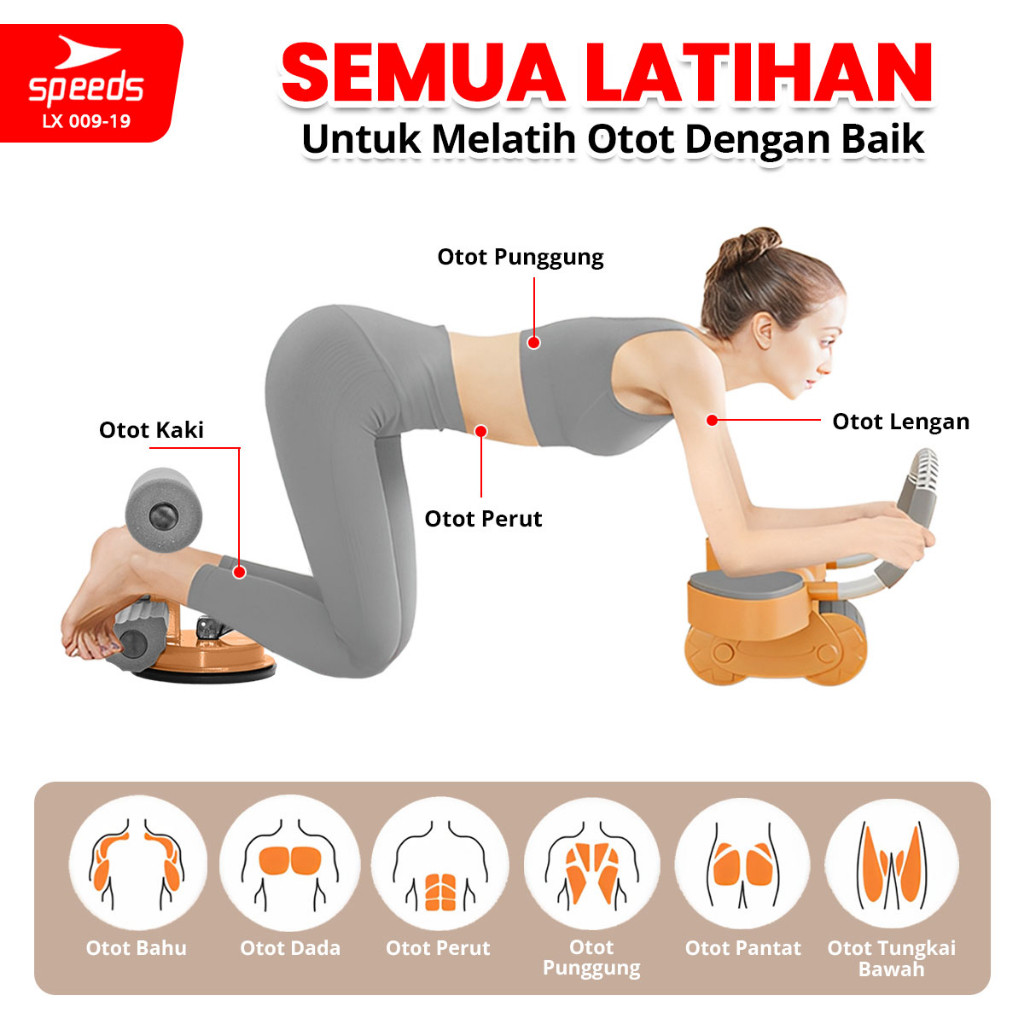 SPEEDS Alat Olahraga Pengecil Perut AB Wheel Roller 2in1 Alat Olahraga Di Rumah Push Up Automatic Rebound Gym 009