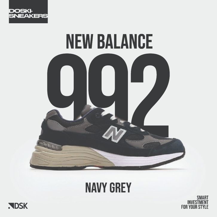 Sepatu New Balance pria 992 Navy Grey Sneakers Casual Wanita Original Murah Official Store