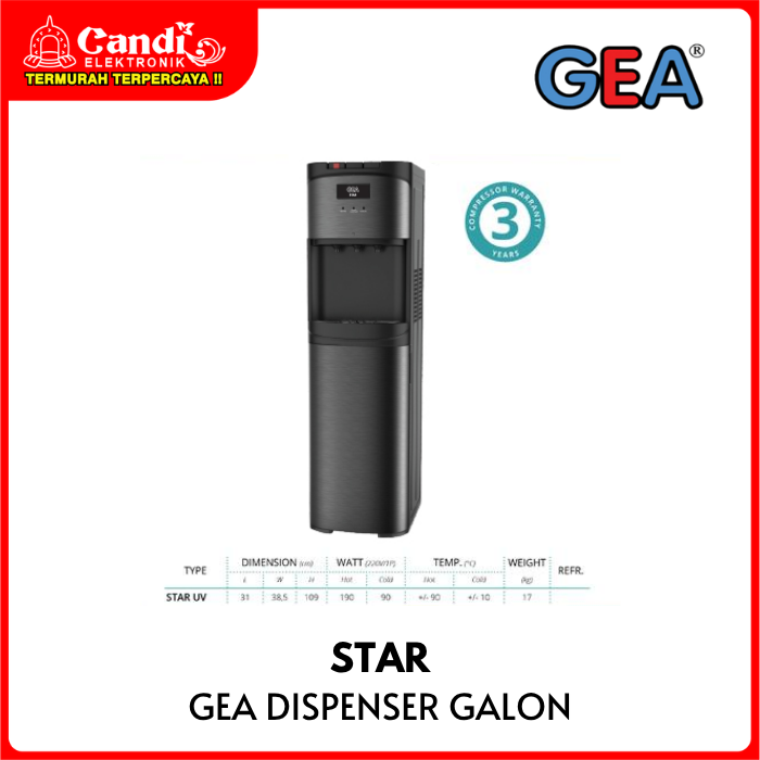 GEA DISPENSER BOTTOM GALLON STAR - GALON BAWAH STAR UV HOT COLD NORMAL