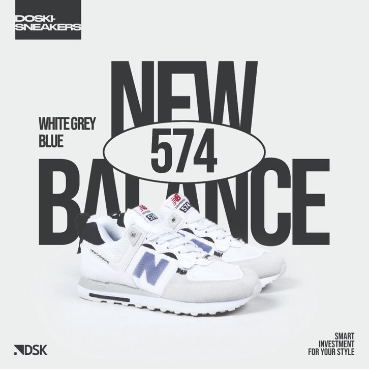 Sepatu New Balance Original Pria 574 White Grey Blue Original Sneakers Casual Ori Running Official Store