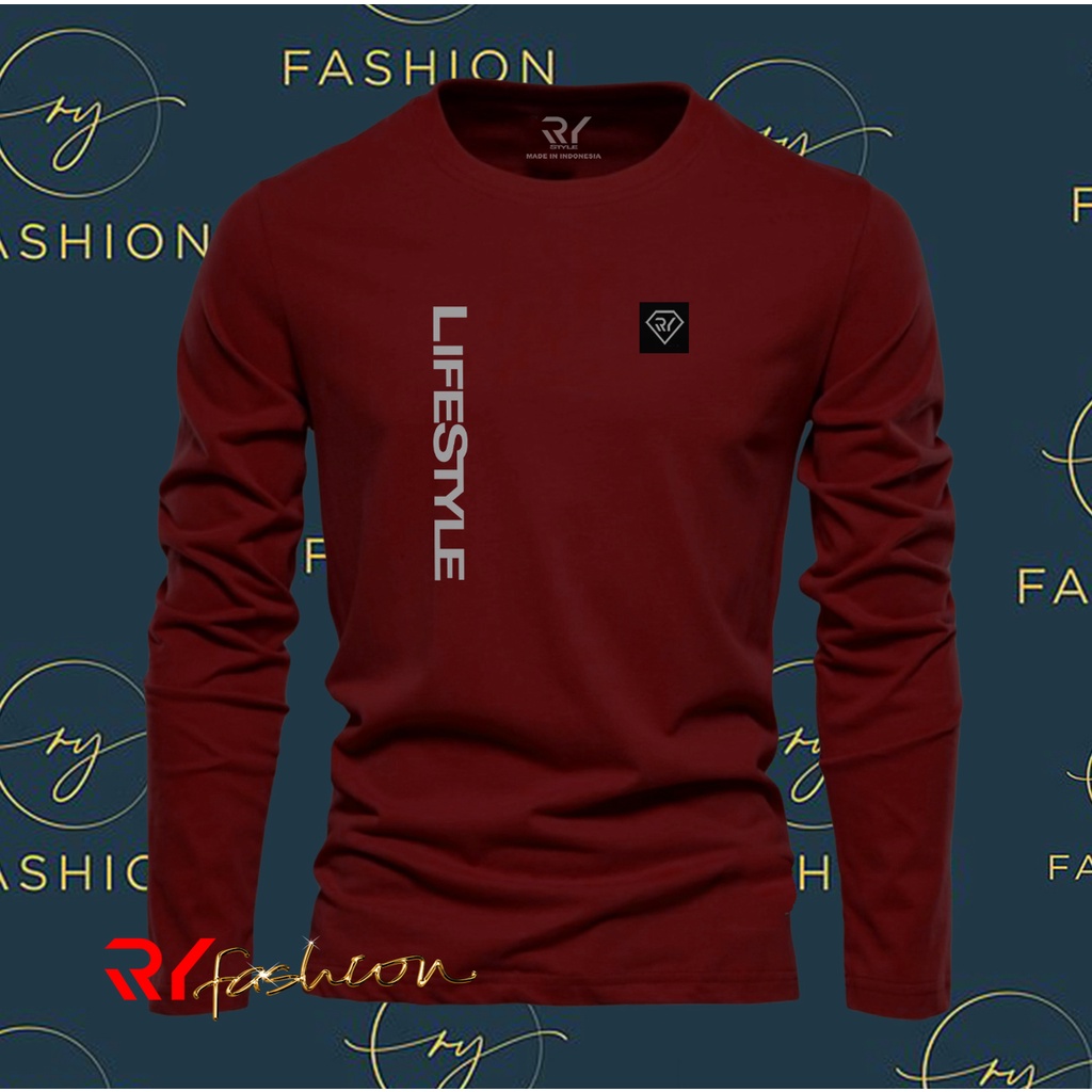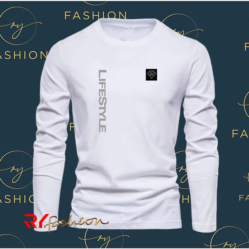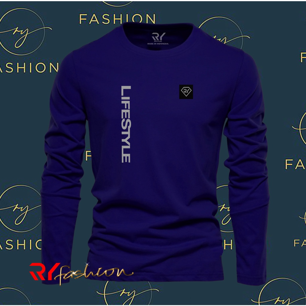 T-SHIRT PRIA WANITA LENGAN PANJANG RY LIFESTYLE BLOK TEGAK SILVER / KAOS DISTRO PREMIUM / KAOS KEREN