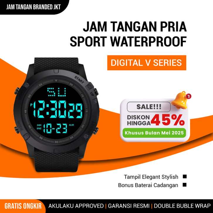 Jam Tangan Digital Sport Anti Air V Series Pria 5cm Arloji Bulat Strap Rubber Pria Kekinian Water Resitance