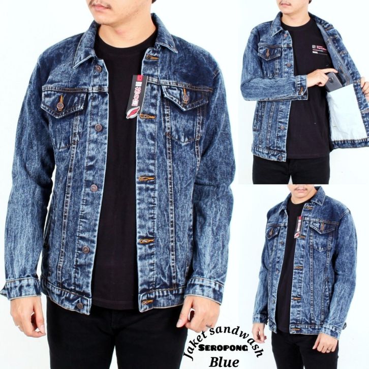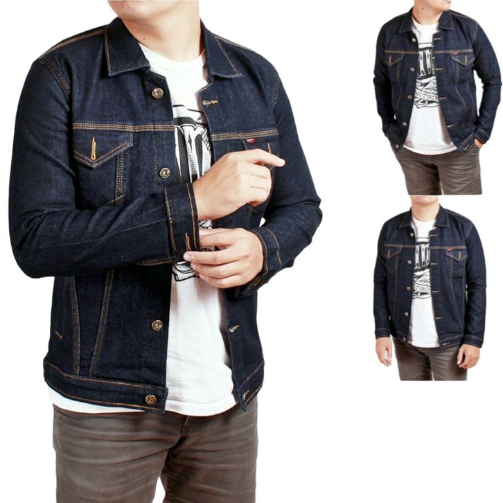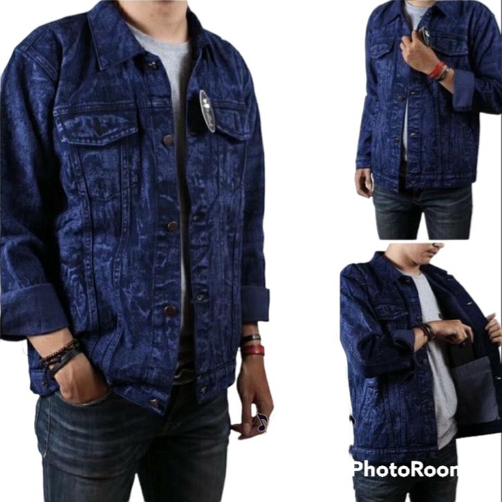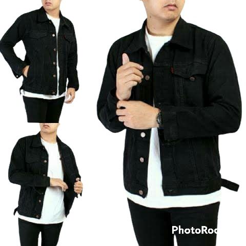 Jaket Jeans Denim Pria Jumbo Big Size Cowok Snow Black Sandwash Hitam Oversize Premium Quality