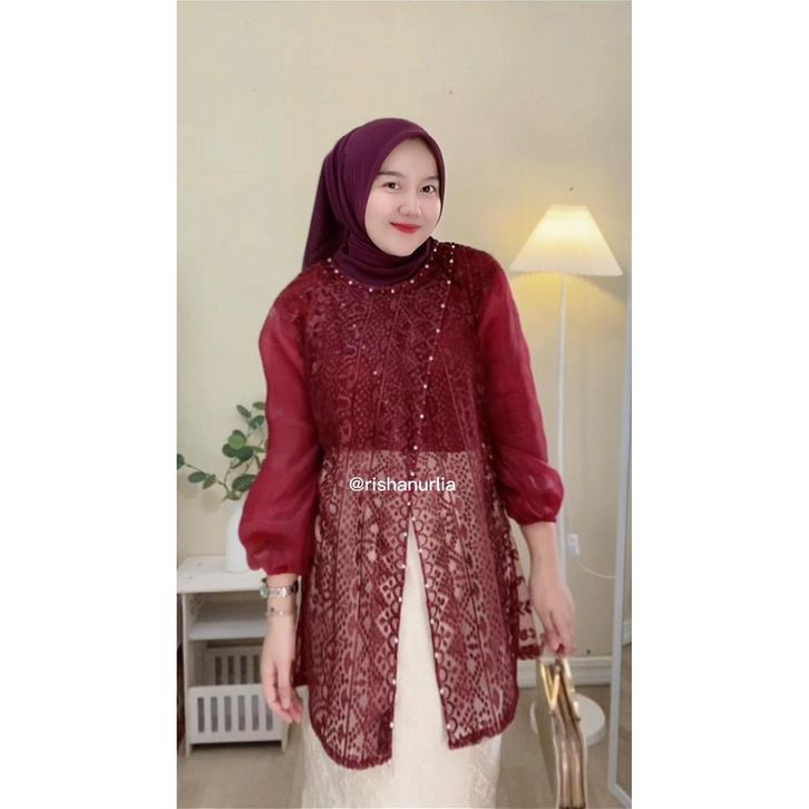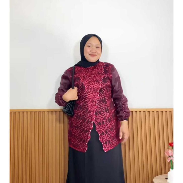 Fiona Outer Jumbo LD 120 Brokat Organza Full Payet Tunik Brukat Baju Hari Raya Kondangan Wisudaan atau Bridesmaid 2026