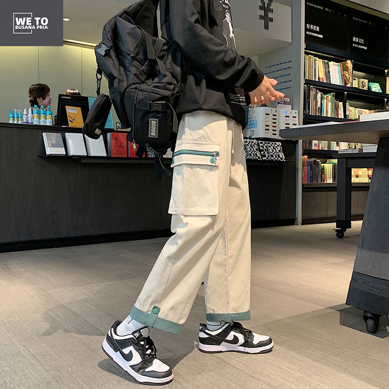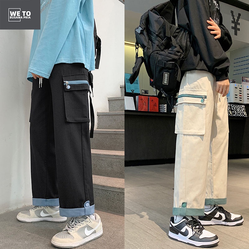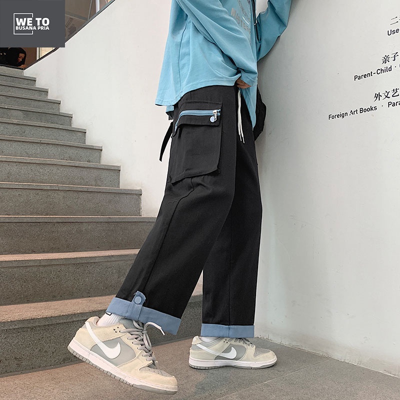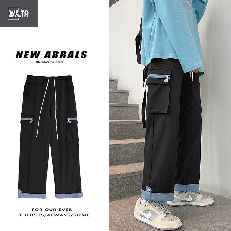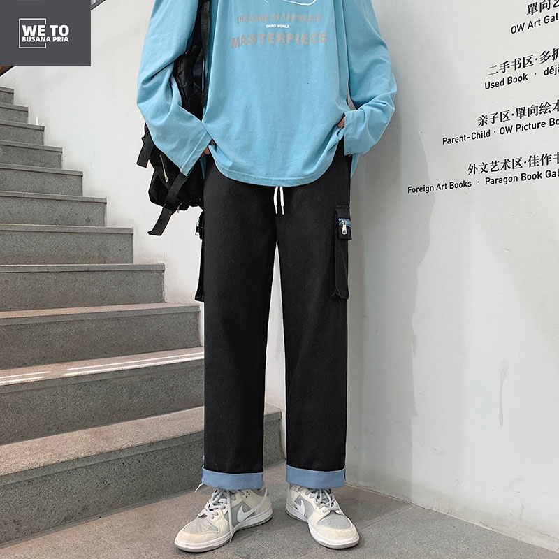 CELANA CARGO KOREA CELANA CASUAL PRIA CELANA LONGGAR PRIA CELANA PANJANG HITAM