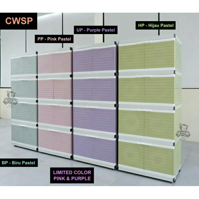 LEMARI PAKAIAN PLASTIK CLUB CWSP 4 SUSUN 2 PINTU FULL WARNA CLUB POLOS RAK BAJU JUMBO TERMURAH