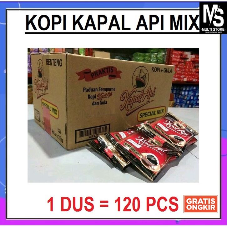 GRATIS ONGKIR- 1 DUS KOPI KAPAL API SPECIAL MIX 24 GRAM 120 SACHET KOPI HITAM PLUS GULA 1 DUS