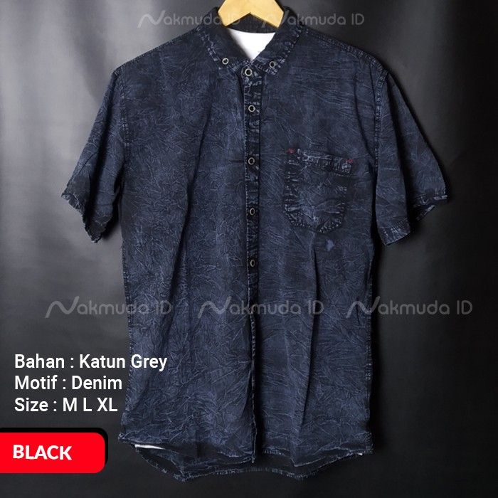 Kemeja Pria Lengan Pendek Hem Motif Jeans Denim Levis Baju Distro Casual Murah