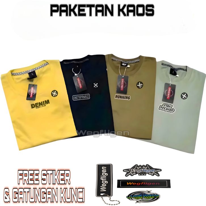 4 Kaos Distro Pria Premium 100RB | Bahan Semi Katun 24s Tebal + Bonus Stiker & Gantungan Kunci Keren