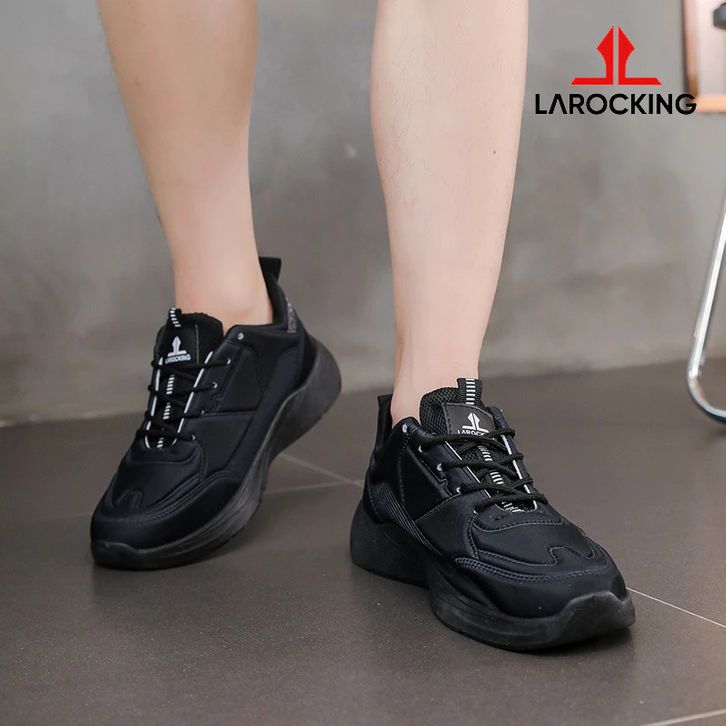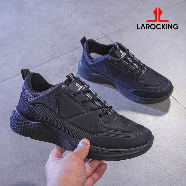 Larocking sepatu sneakers pria Zavyr Hitam Polos sepatu pria Running Gym Shoes sepatu olahraga pria