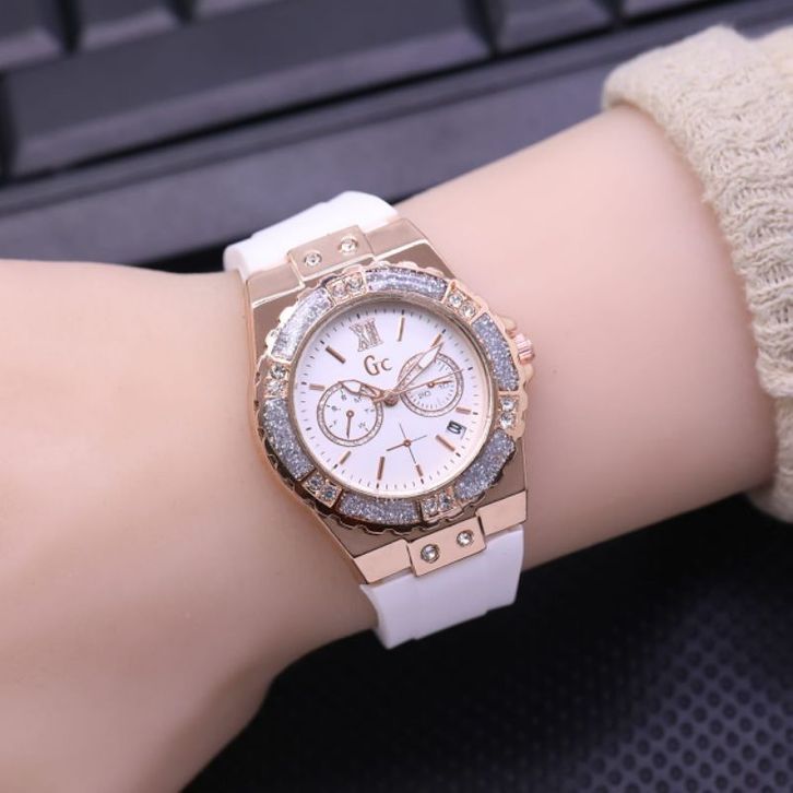 Jam Tangan Tali Rubber Gc Fitur Chrono Aktif Diameter Cowok 45mmWanita 34mm Arloji Time Analog Cewek Cowok