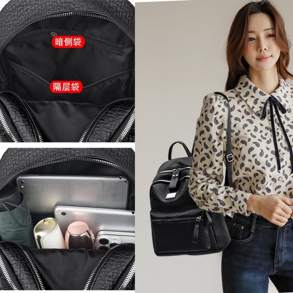 TAS RANSEL WANITA IMPORT KOREA KULIT CROCO HITAM CULTIVA TA717B5 BACKPACK SEKOLAH CEWEK KULIAH KERJA