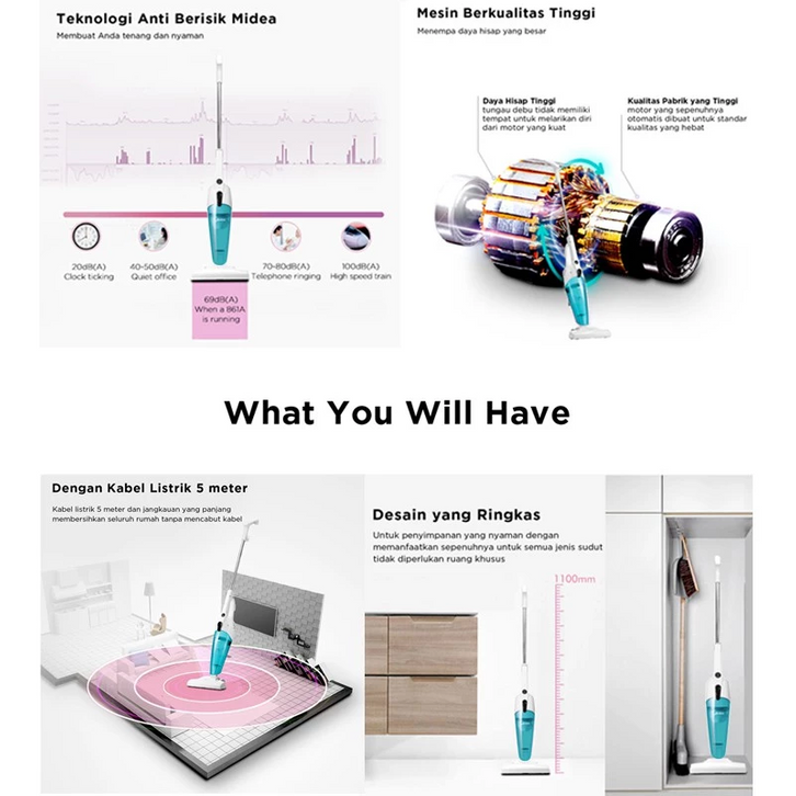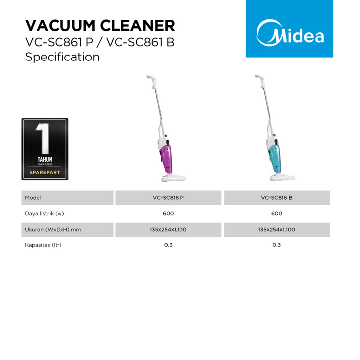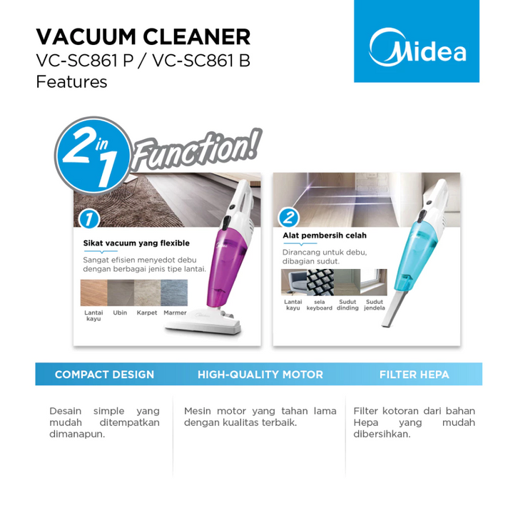 [HARGA DISKON] Midea Vacuum Cleaner 2 in 1 VC-SC861B / VC-SC861P - Alat Vacuum Cleaner Portable - Pengepel - Penghisap