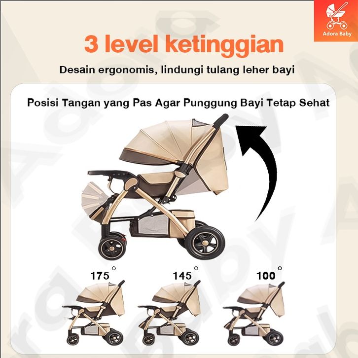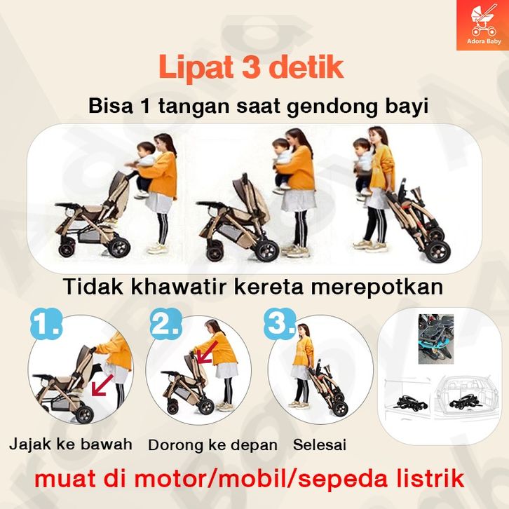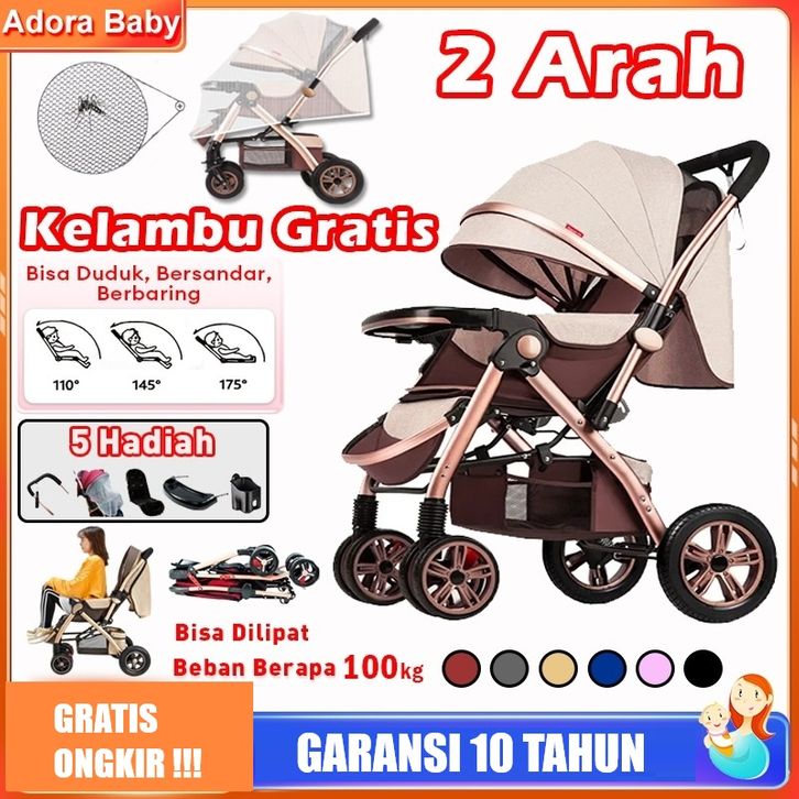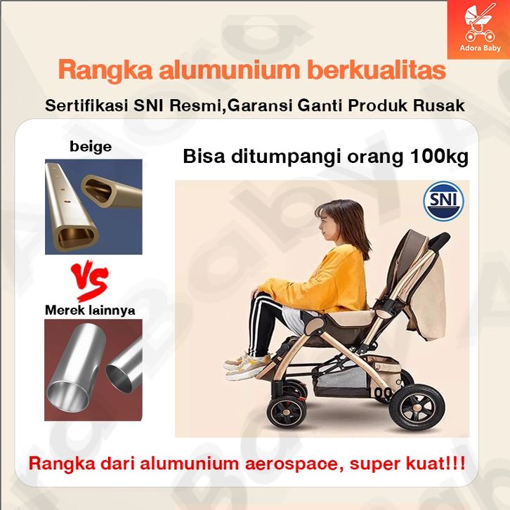 [Garansi 10 Tahun] BEIGE Stroller Bayi Lipat Travelling stroller baby 2 Arah Beban Berapa 100kg