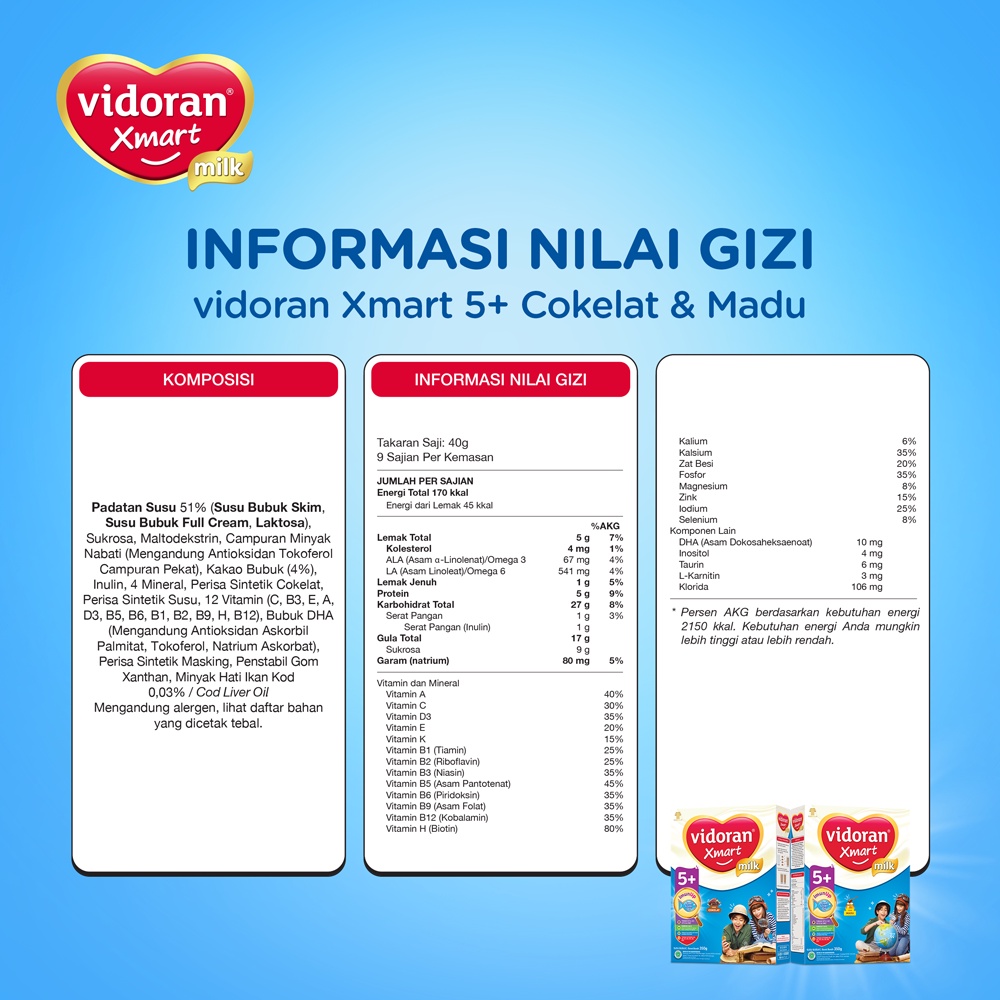 Paket 2 Box VIDORAN XMART 5+ 700GR MADU/ COKLAT (5-12 TAHUN) - 2 BOX
