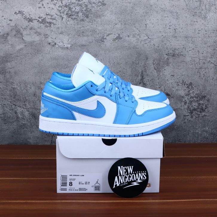 SEPATU PREMIUM TERBARU✔ SEPATU NIKE AIR JORDAN 1 LOW ALUMUNIUM ICE UNC BLUE BIRU KASUAL POLA ORIGINAL HIGH QUALITY