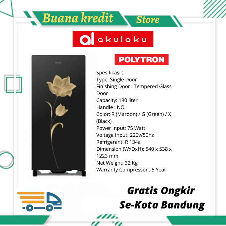 Kulkas POLYTRON 1 pintu 180 liter PRA 18MNX