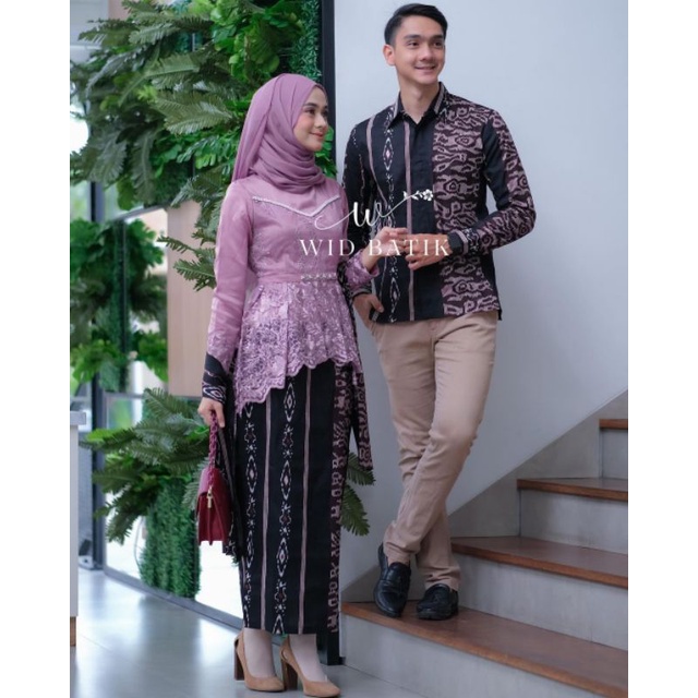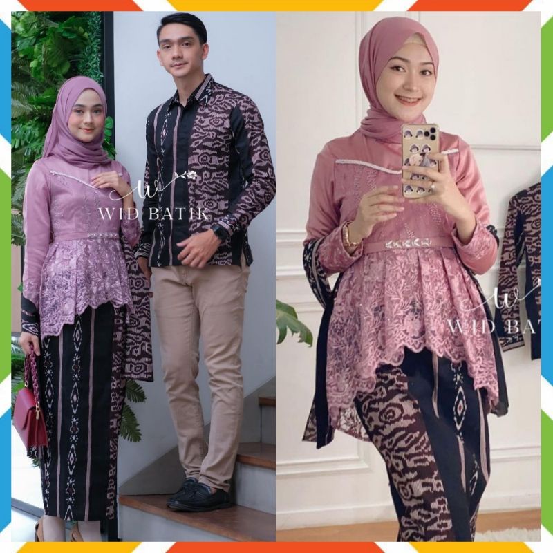 SET COUPLE KEBAYA BATIK ALEENA SONGKET PURPLE MODERN KALENA TERBARU MURAH BAJU WISUDA OUTFIT KONDANGAN LAMARAN