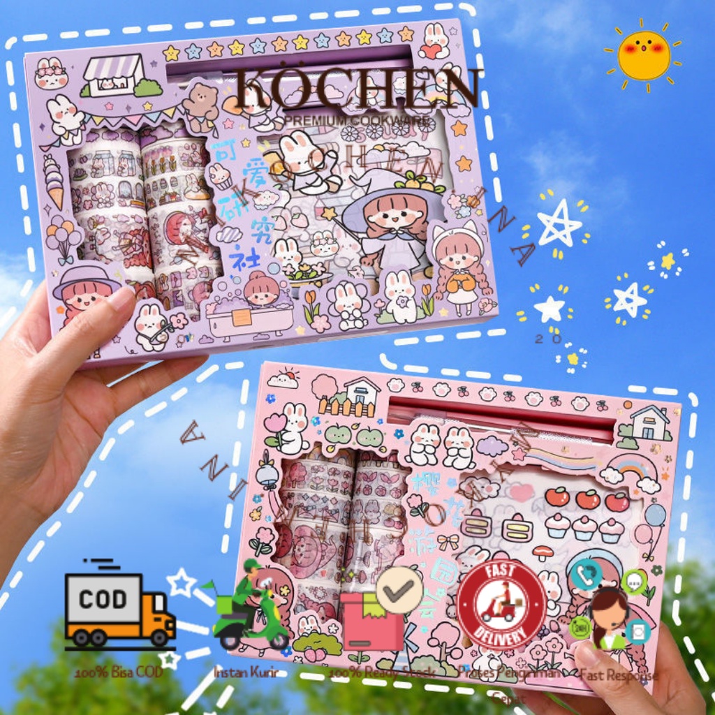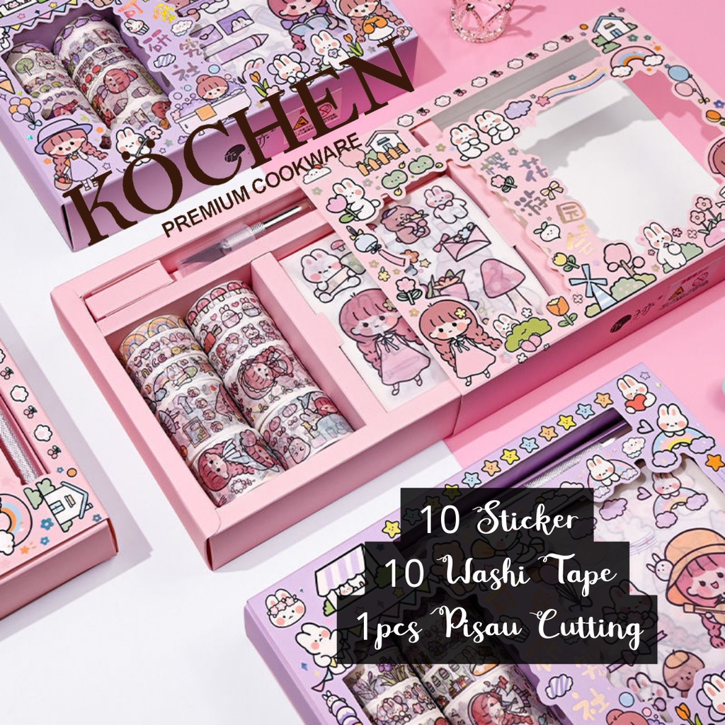 PROMO MYKOCHEN.INA STICKER AESTHETIC BOX SET 10+10+1 WASHI TAPE KNIFE PAPER CUTTING DIY DIARY STIKER