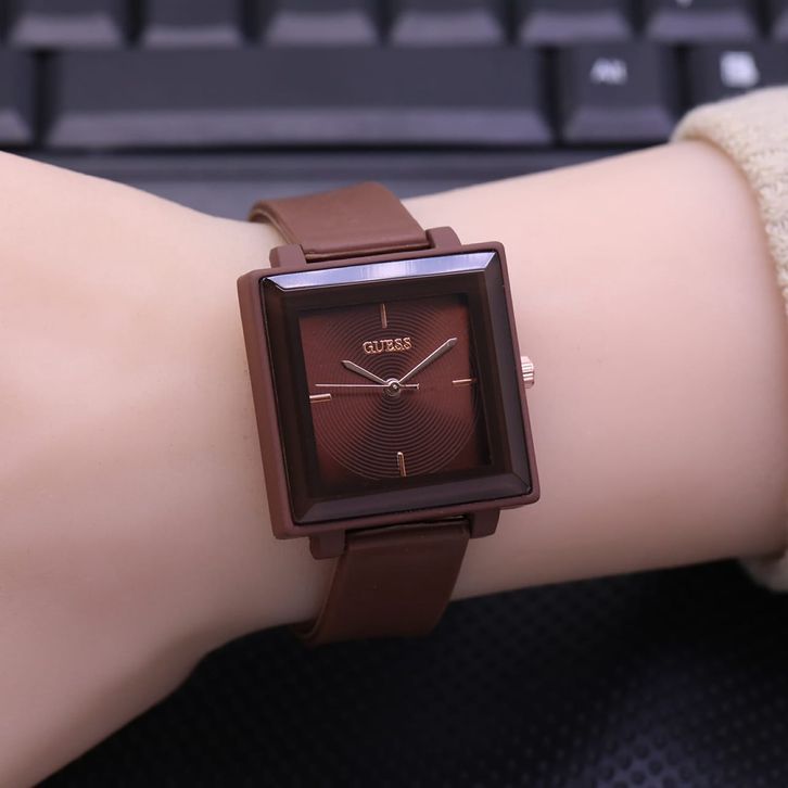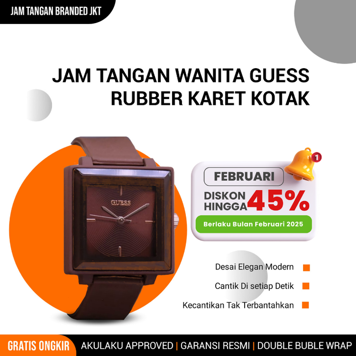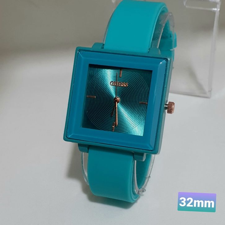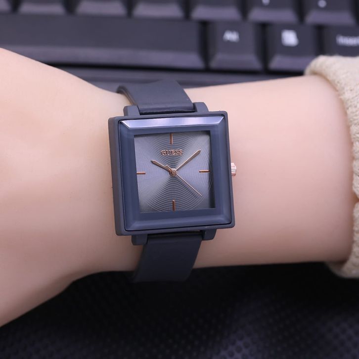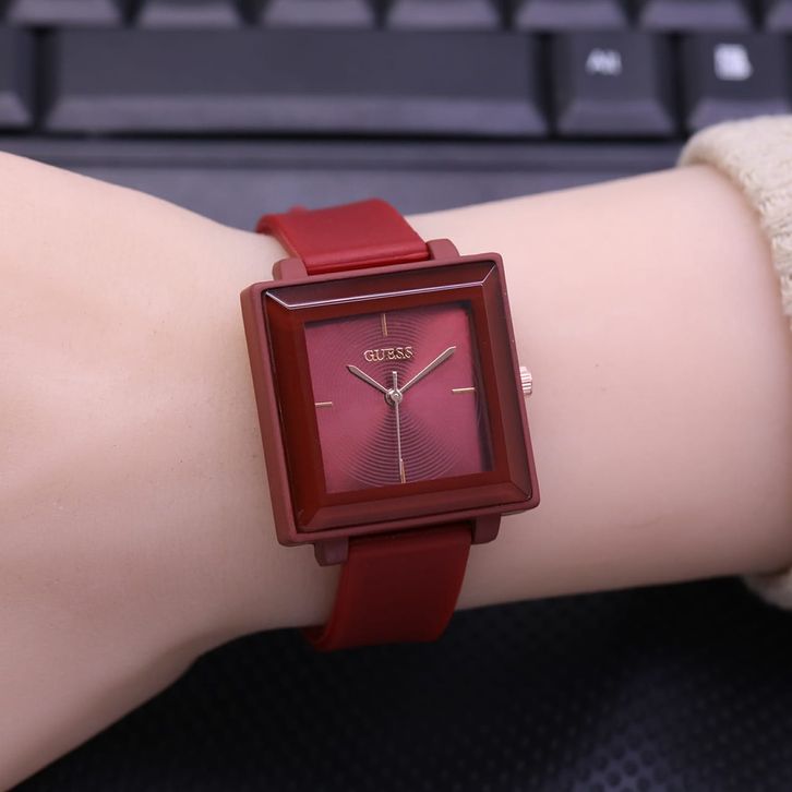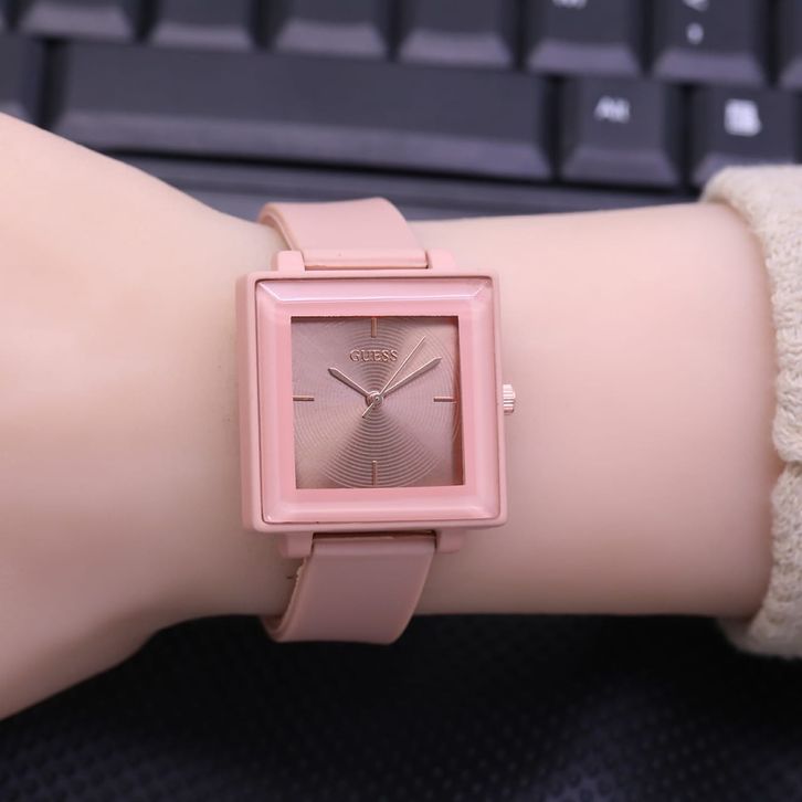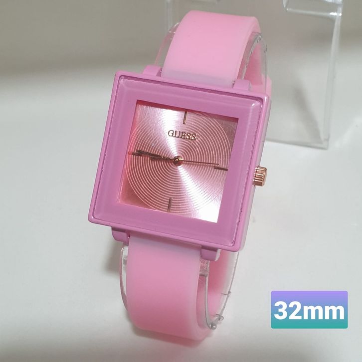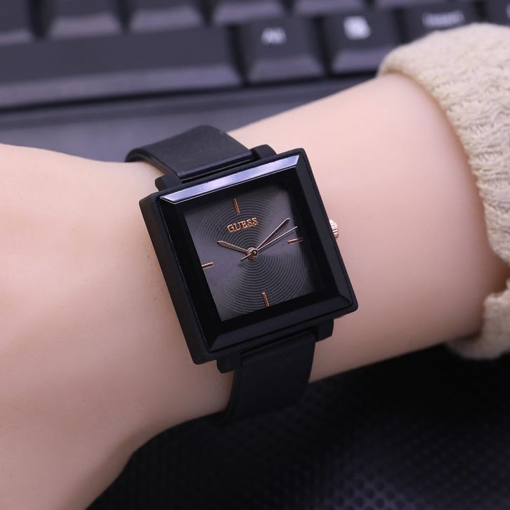 Jam Tangan Analog Kotak Segi Wanita Guess Tali Rubber Karet Arloji 32 Mm Fashion Wanita Modis Kekinian