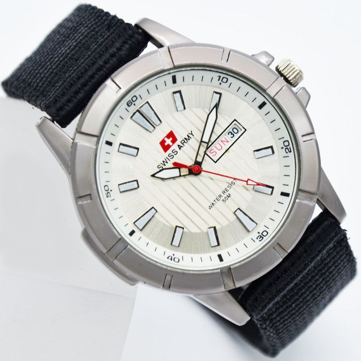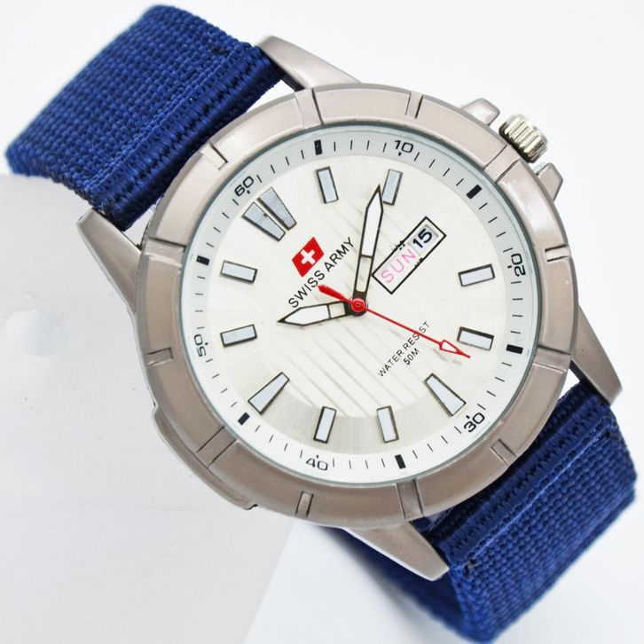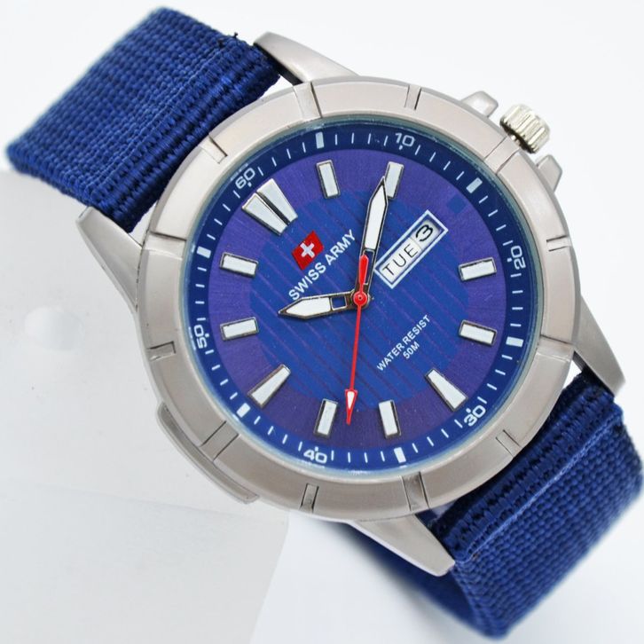 Jam Tangan Kanvas Cowok Fitur Hari Tanggal Aktif Arloji 45mm Aksesoris Fashion Pria Analog Swiss Kekinian