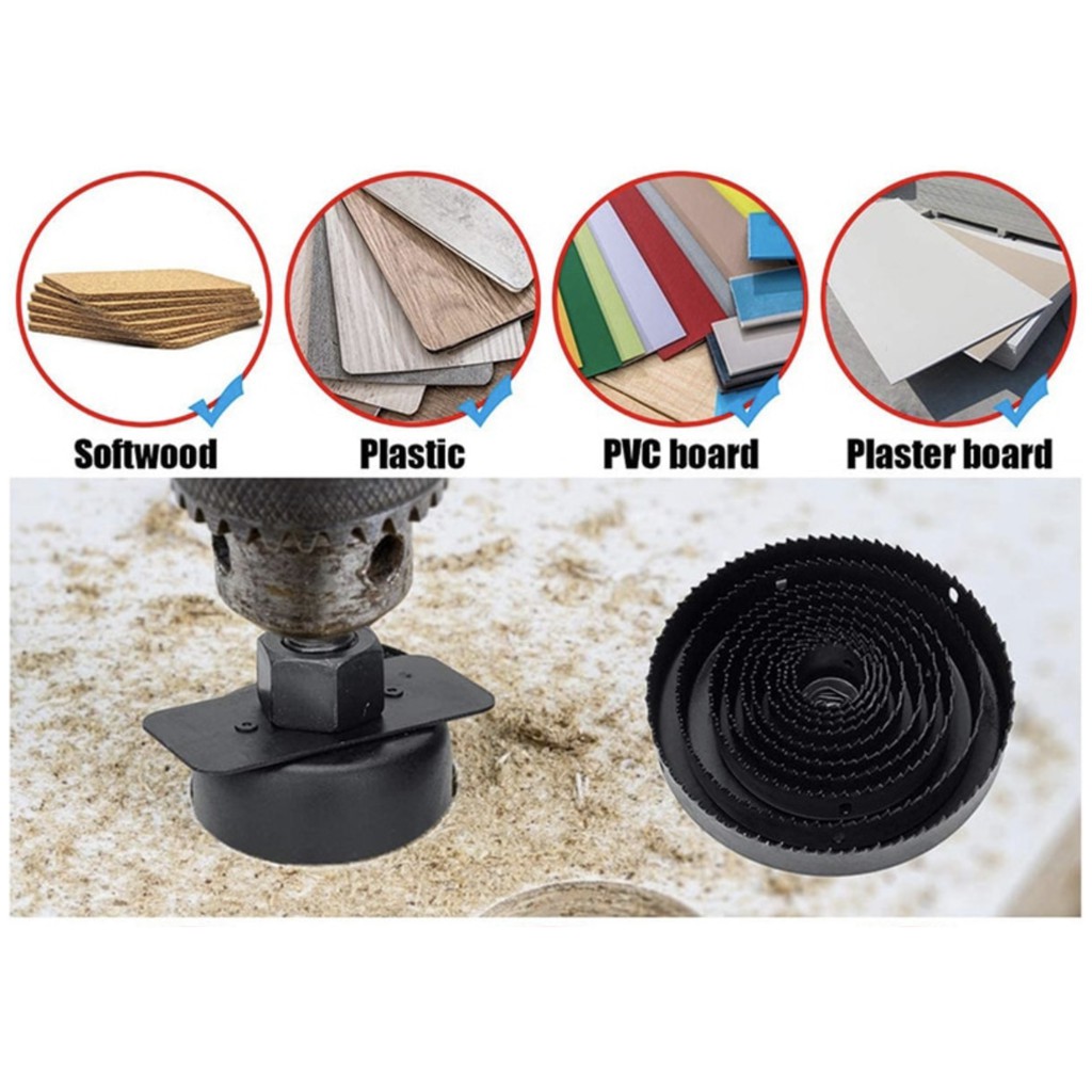 KEPALA MATA BOR HOLESAW KIT SET 16 PCS PEMBOLONG PELUBANG KAYU PIPA PARALON PVC GYPSUM ACRYLIC