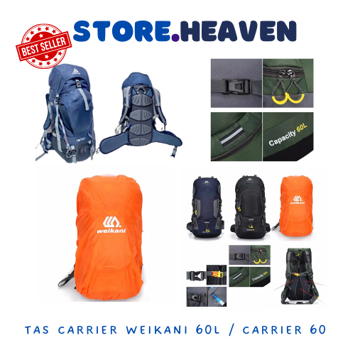 Tas CARRIER WEIKANI 60L / Carrier 60L /(Include Rain Cover)/carrier 50+5L Montana BEST SELLER - STORE.HEAVEN
