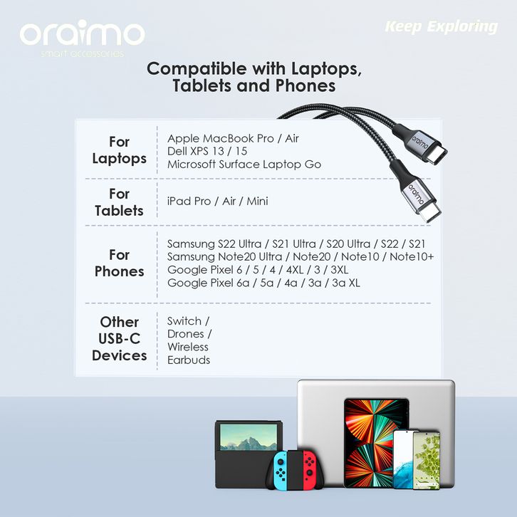 Oraimo Data Cable Type-C Pushline Kabel 20V 5A Charging 3M OCD-CC11A
