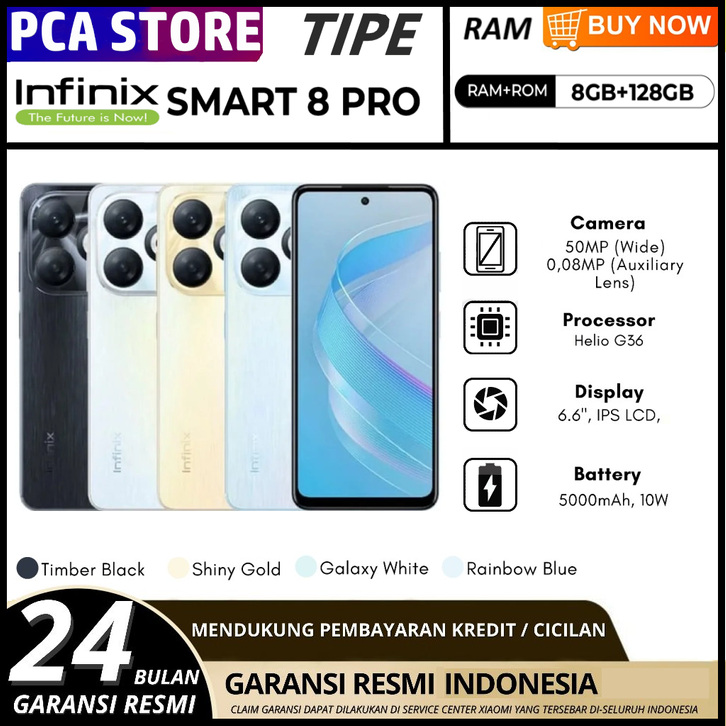 Infinix Smart 8 Pro 8GB/128GB Extended RAM 8GB - Helio G36 - 50MP Dual Camera - 6.6" IPS LCD - 5000mAh | smart 8