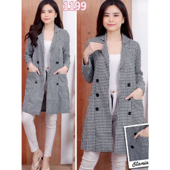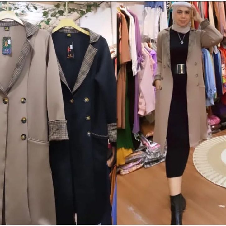 Long Blazer Panjang Cewek Plus Bros Terbaru Pakaian Atasan Lengan Panjang Cewek Fashion Kekinian Bahan Linen
