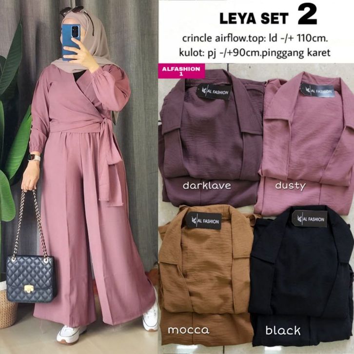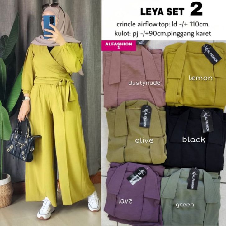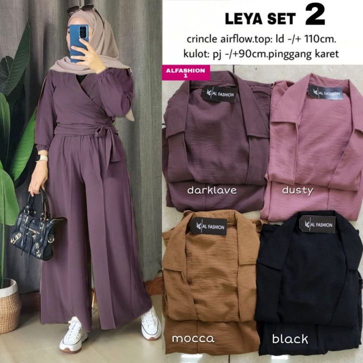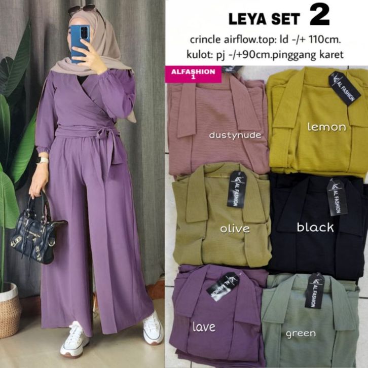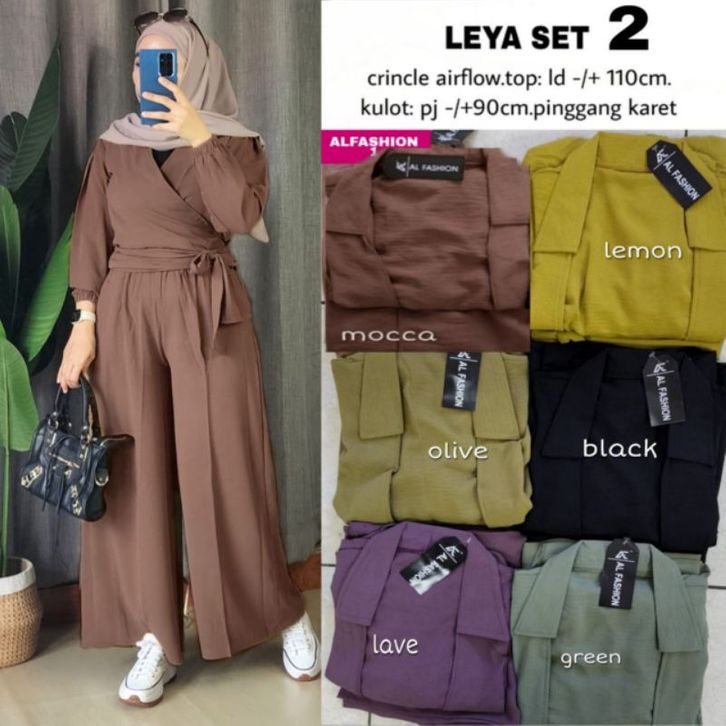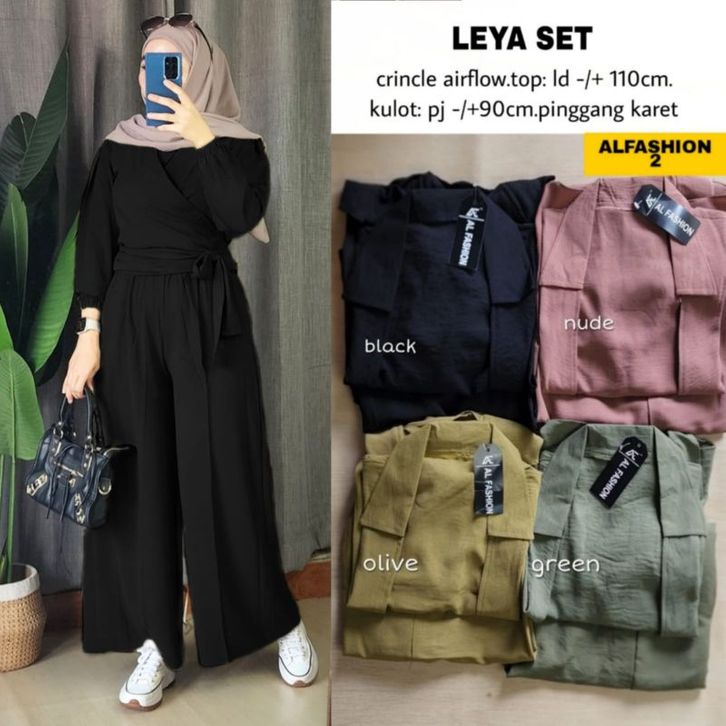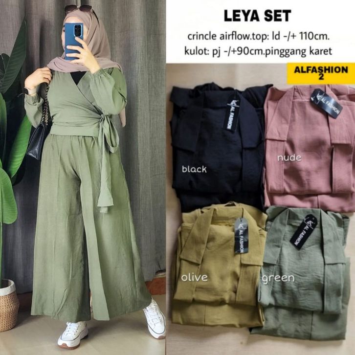 Baju Setelan Wanita Murah Leya Set Kulot Crinkle Airflow By Alfashion