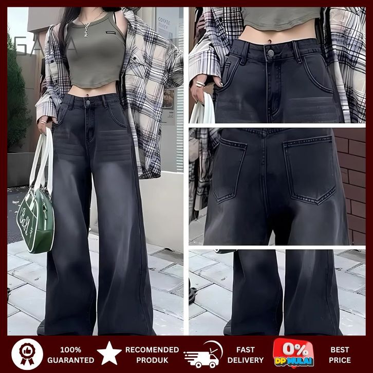 Celana Jeans Wanita Beggy pants Hitam Retro Terbaru Gombrong Reguler Loose Celana Panjang Wanita Kekinian Murah Jumbo