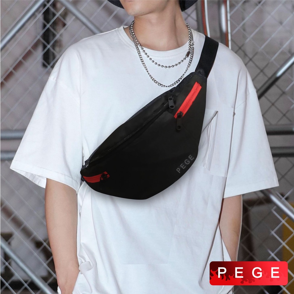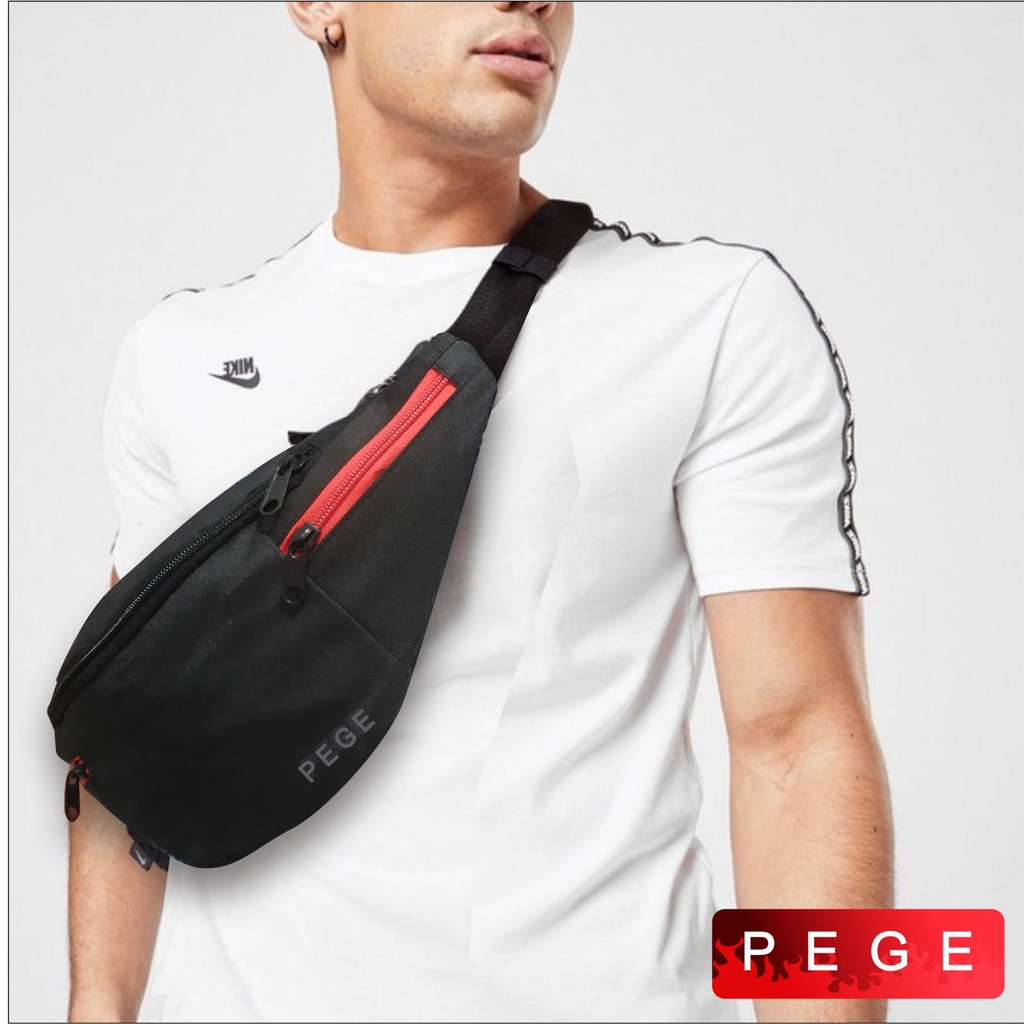 Tas Selempang Bahu Pria Model Waistbag Polos Hitam Slempang Cowok Simpel Kasual Cocok Untuk Jalanjalan - PG 8891